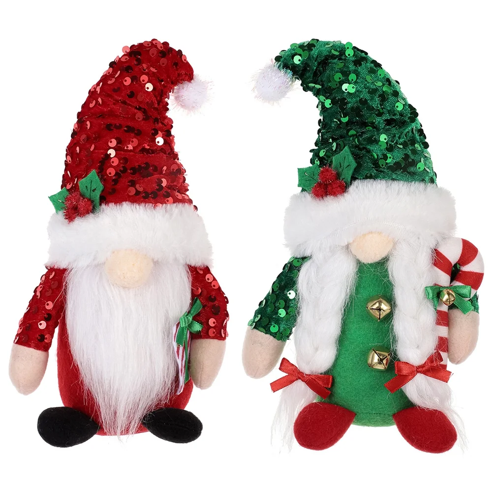2Pcs Christmas Dolls Sequin Hat Gnome Faceless Doll Festival Dolls Plush Handmade Faceless Doll Ornaments Home Party Decor