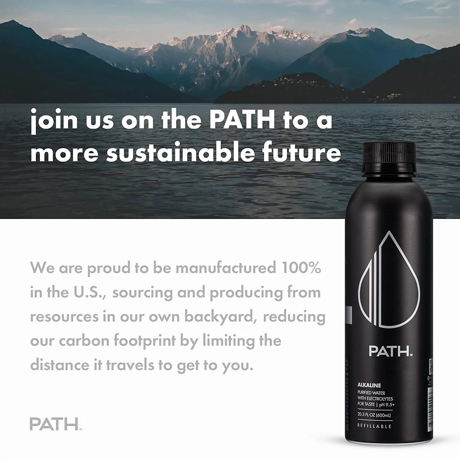 PATH Water Alkaline Bottled Water in Reusable Aluminum Bottle, 20.3 fl oz, 9 Pack