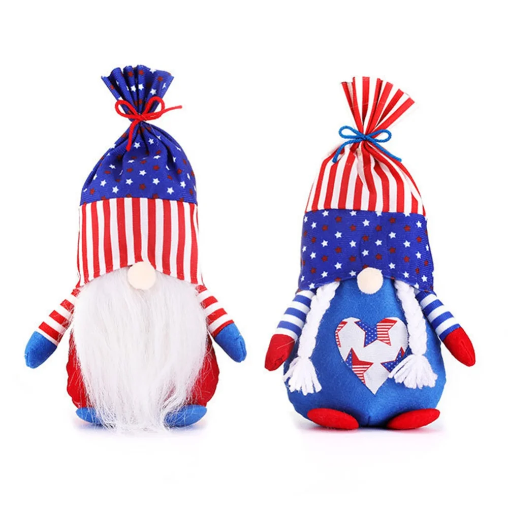 2pcs Patriotic Gnome Dwarf Doll,Independence Day Gnome,Plush Faceless Doll,Rudolf Elf Doll Figures,4th of July Holiday DIY Party Decoration,Home Mall Tiered Tray Desktop Counter Decor