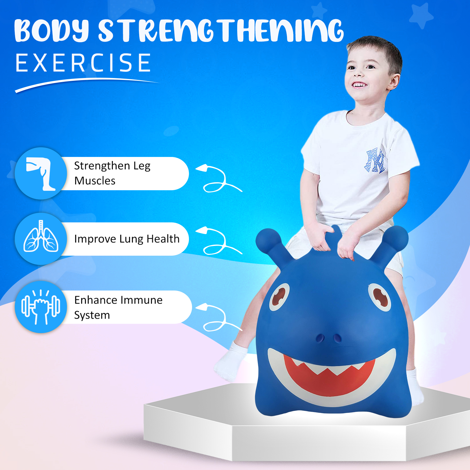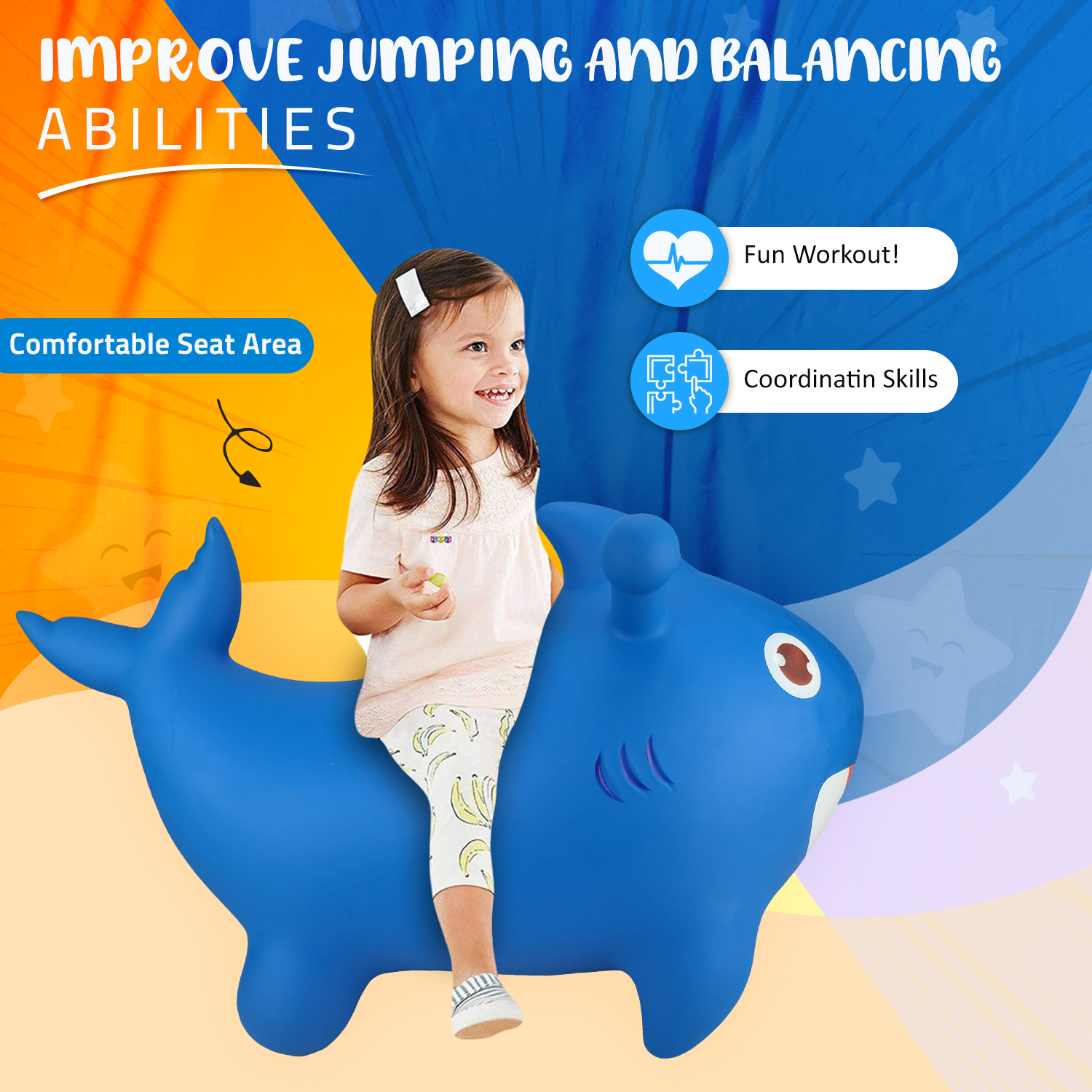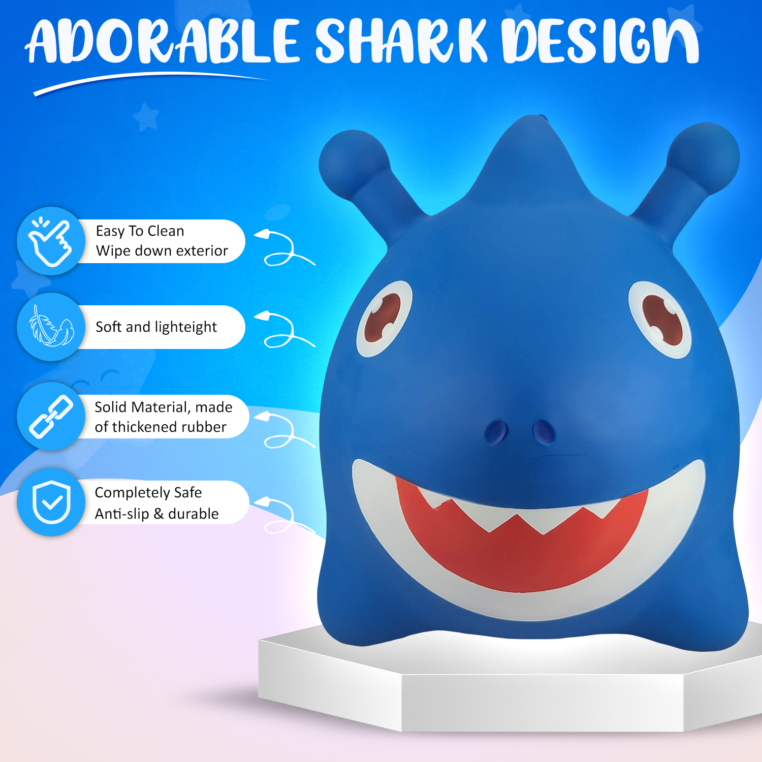 Rigma Bouncy Horse Shark - ECO-Friendly - Animal Bouncing Horse Hopper Toy, Inflatable Ride on Jumping Bouncer for Kids (Blue)