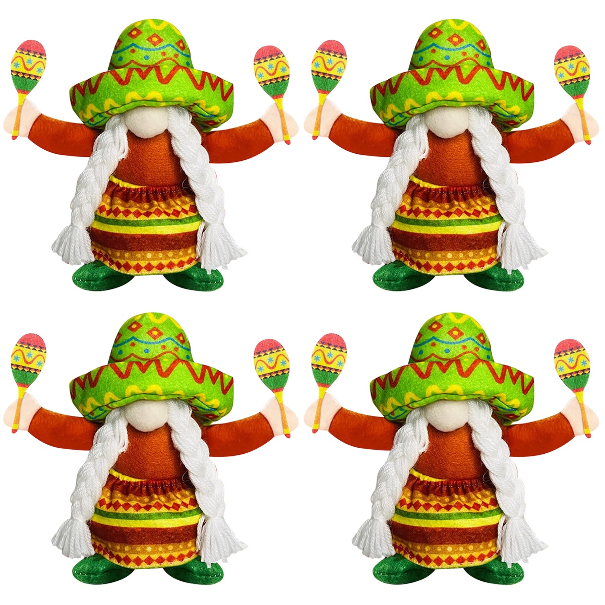 Set of 4 Doll Ornaments Home Decor Tabletop Tablescape Summer Decorate Elder Cloth