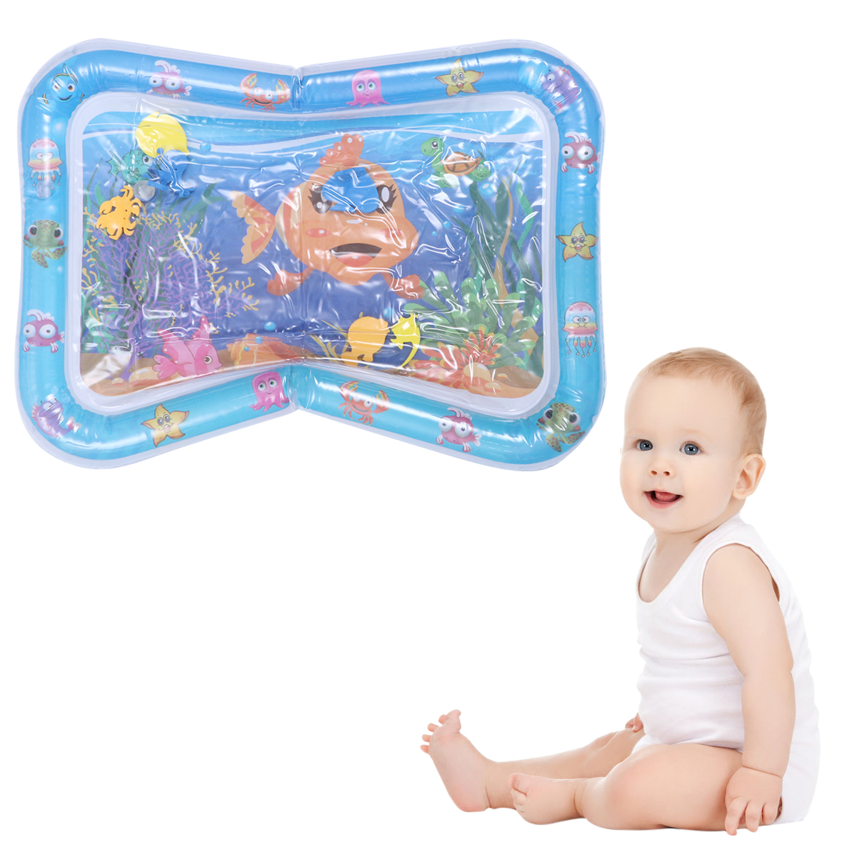 Creative Small Goldfish Design Baby Pad Toys Inflatable Crawling Cushion Water Play Mat Leakproof Colorful Play Mat Baby Toys for Infants Toddlers (Blue)