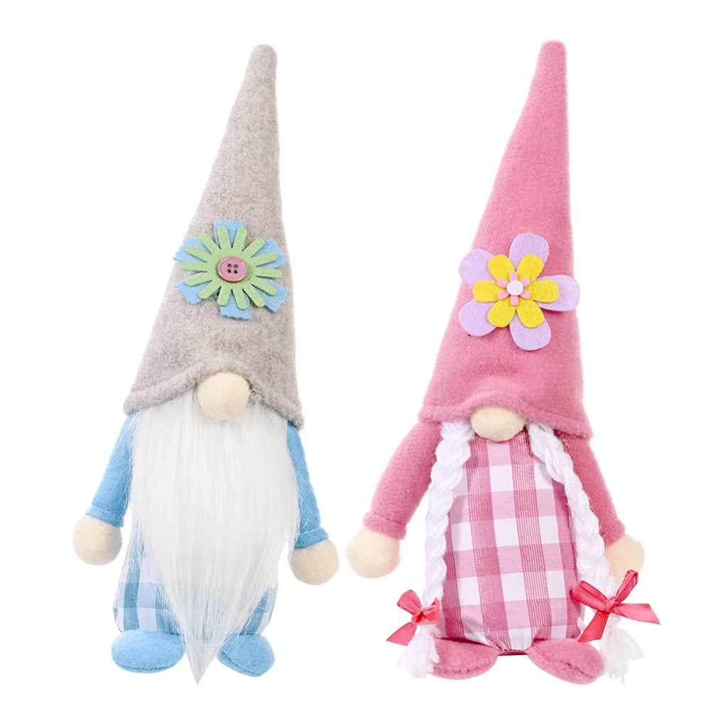2pcs Flower Hat Faceless Doll,Spring Gnome Elf Doll,Mother's Day Gnome Dolls,Father's Day Gnomes,Handmade Rudolph Dwarf Doll,for Mother’s Day Father's Day Thanksgiving Valentine Birthday Gift