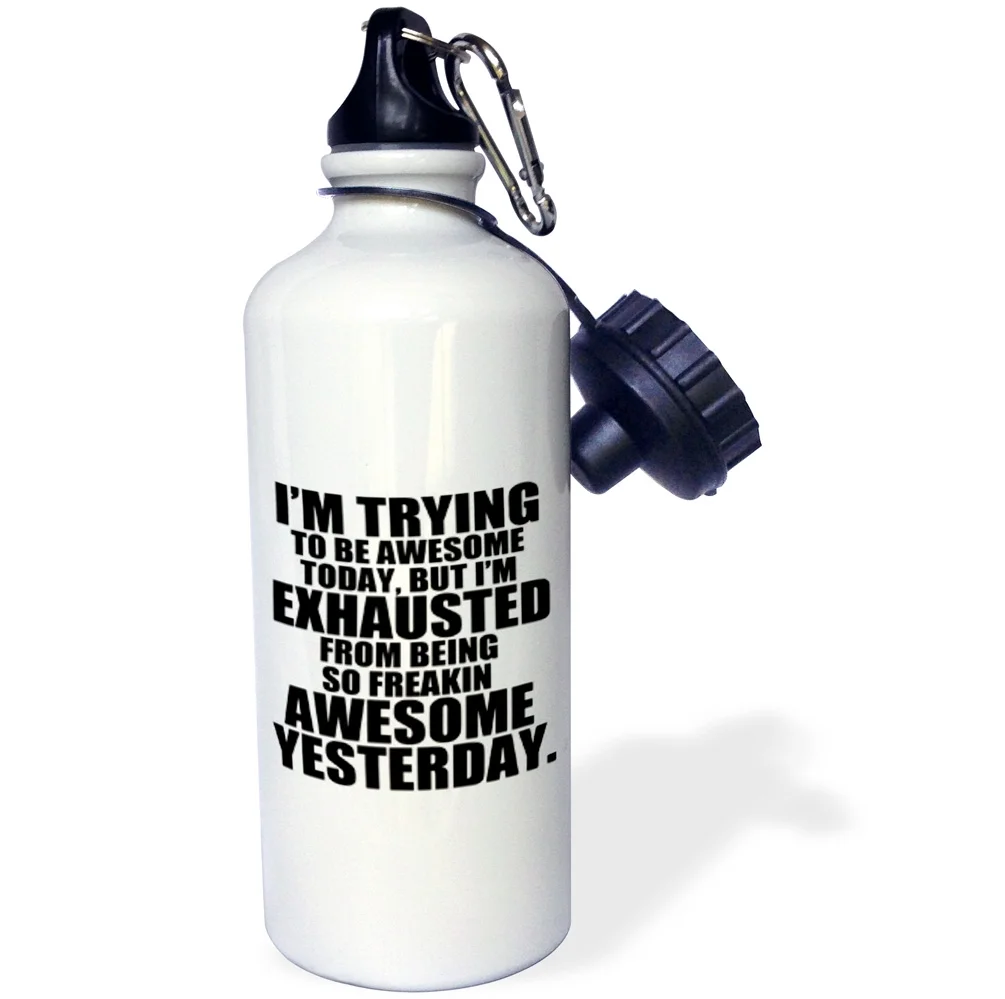 3dRose Im trying to be awesome today. Black., Sports Water Bottle, 21oz