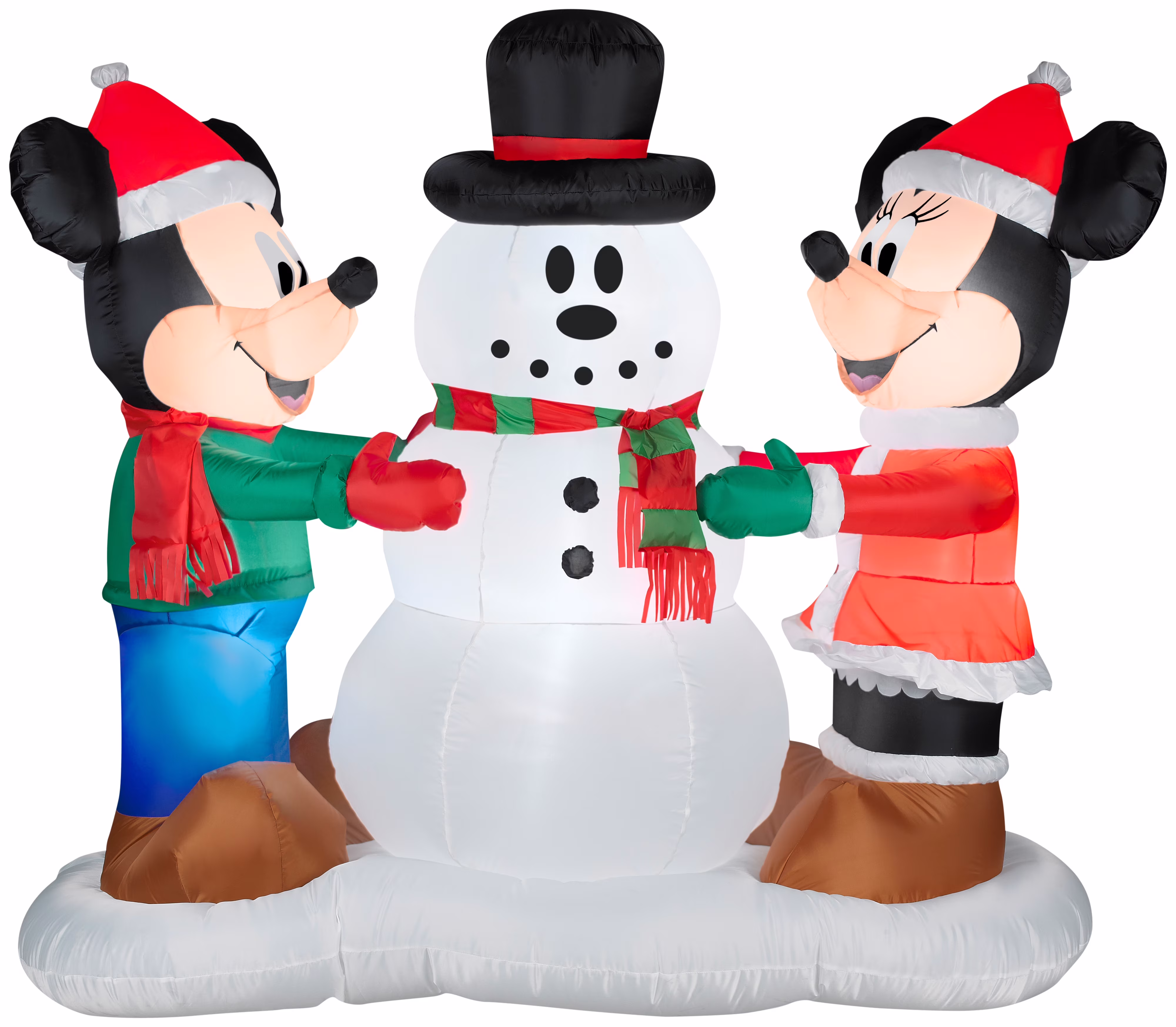Gemmy Christmas Airblown Inflatable Mickey and Minnie Decorating Snowman Scene Disney, 5 ft Tall