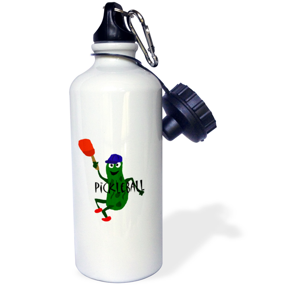 3dRose Funny Pickleball Pickle with Blue Hat and Paddle - Water Bottle, 21-ounce