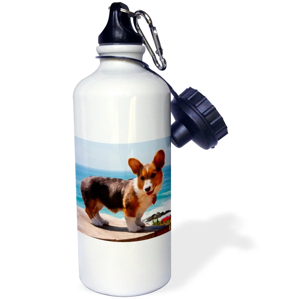 Pembroke Welsh Corgi puppy standing on wooden table 21 oz Sports Water Bottle wb-206233-1