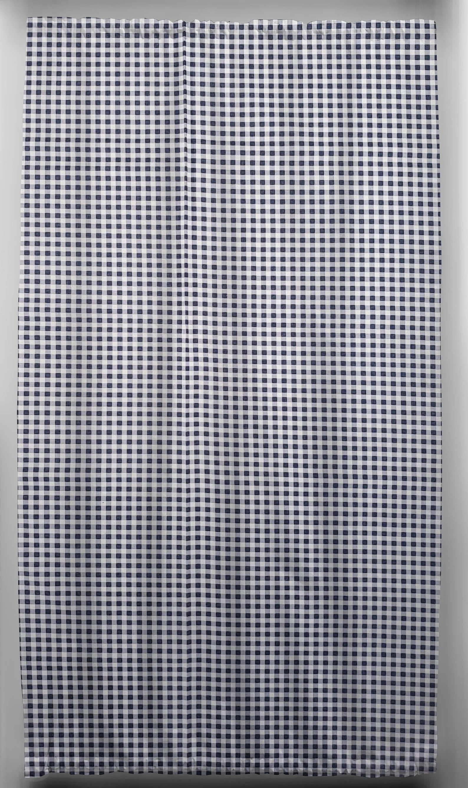 Navy Blue & White Checked Gingham French Door Curtain Panel with Tie Back (Lined)