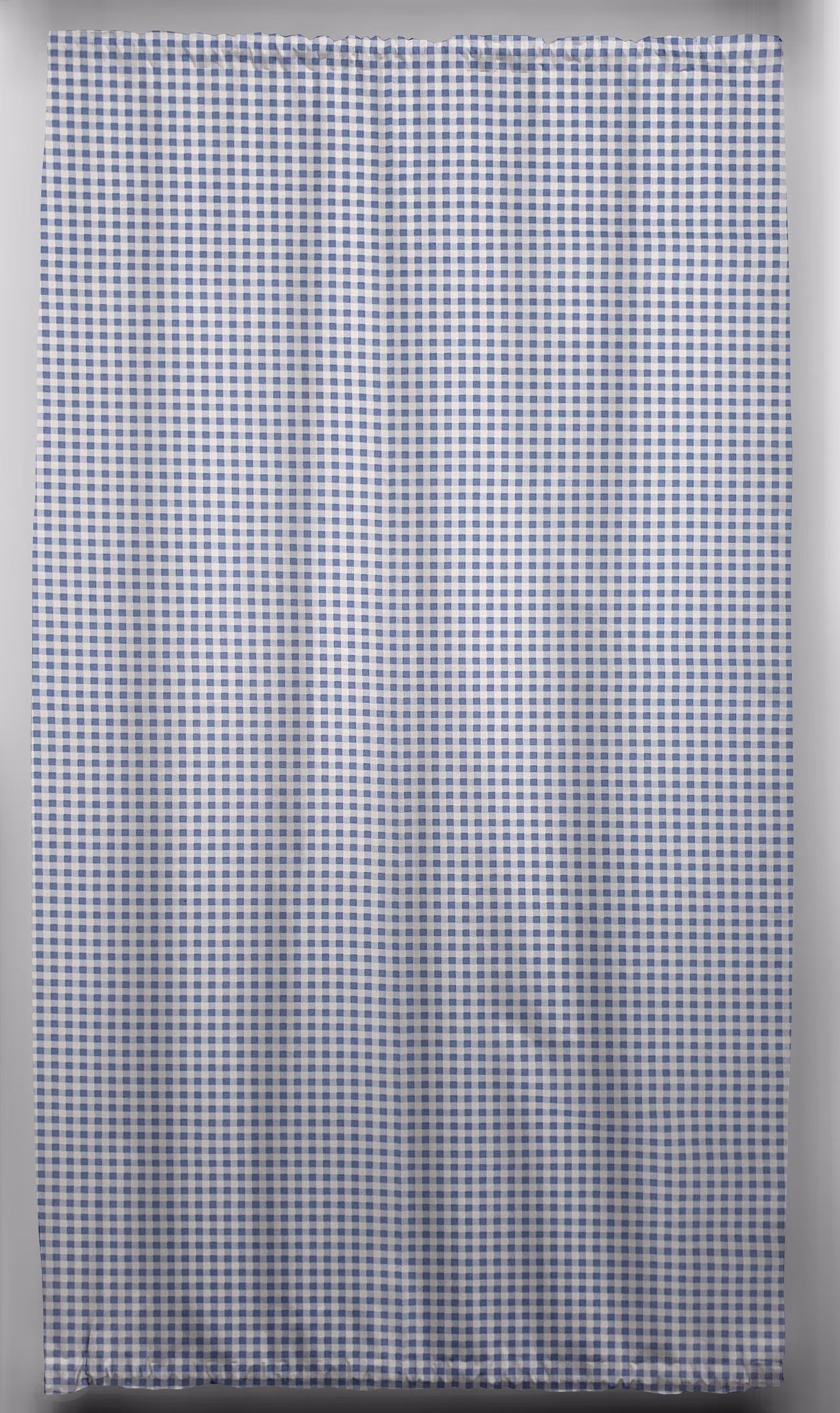 Light Blue & White Checked Gingham French Door Curtain Panel with Tie Back (Lined)