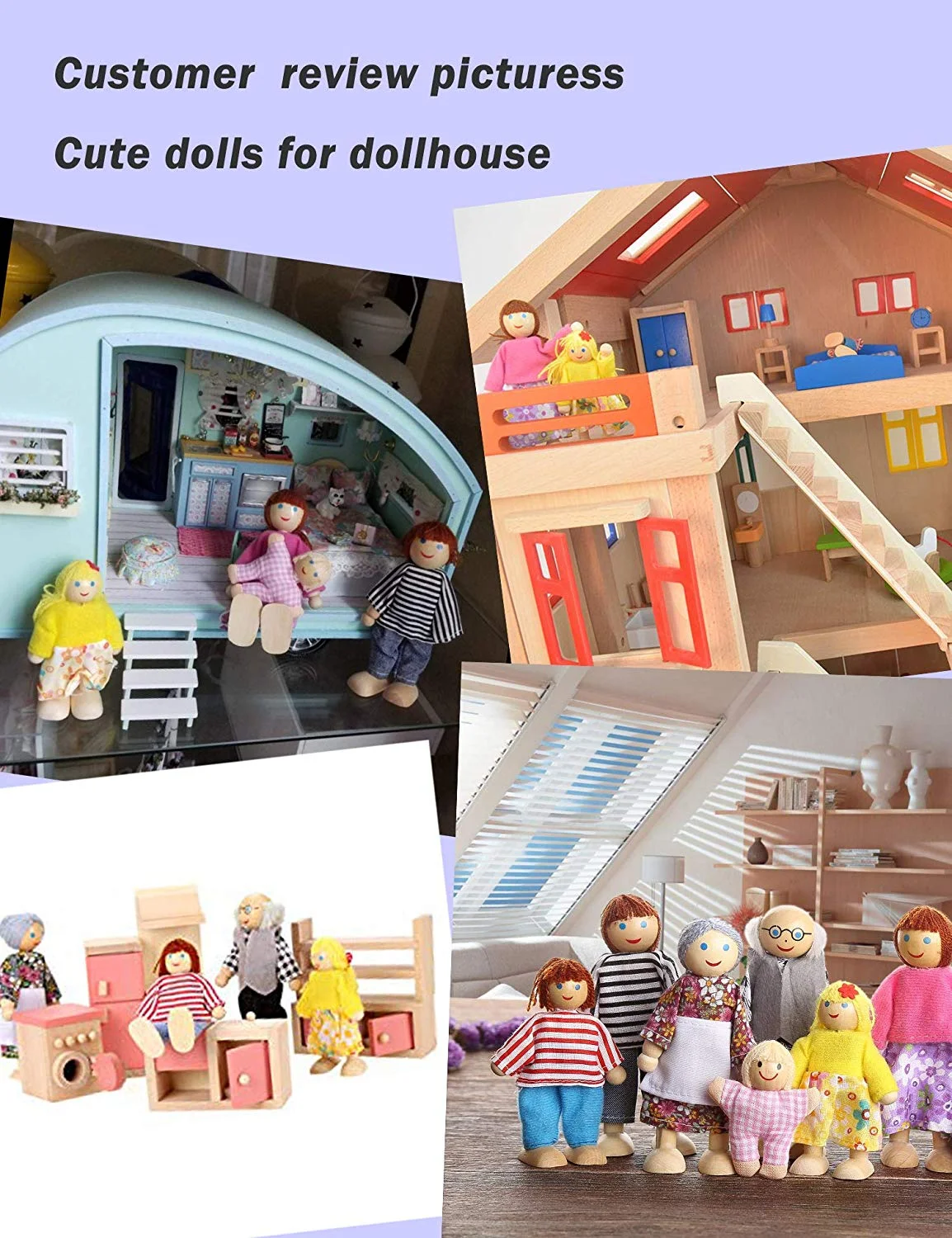 Bowake Wooden Furniture Dolls House Family Miniature 8 People Doll Toy For Kid Child