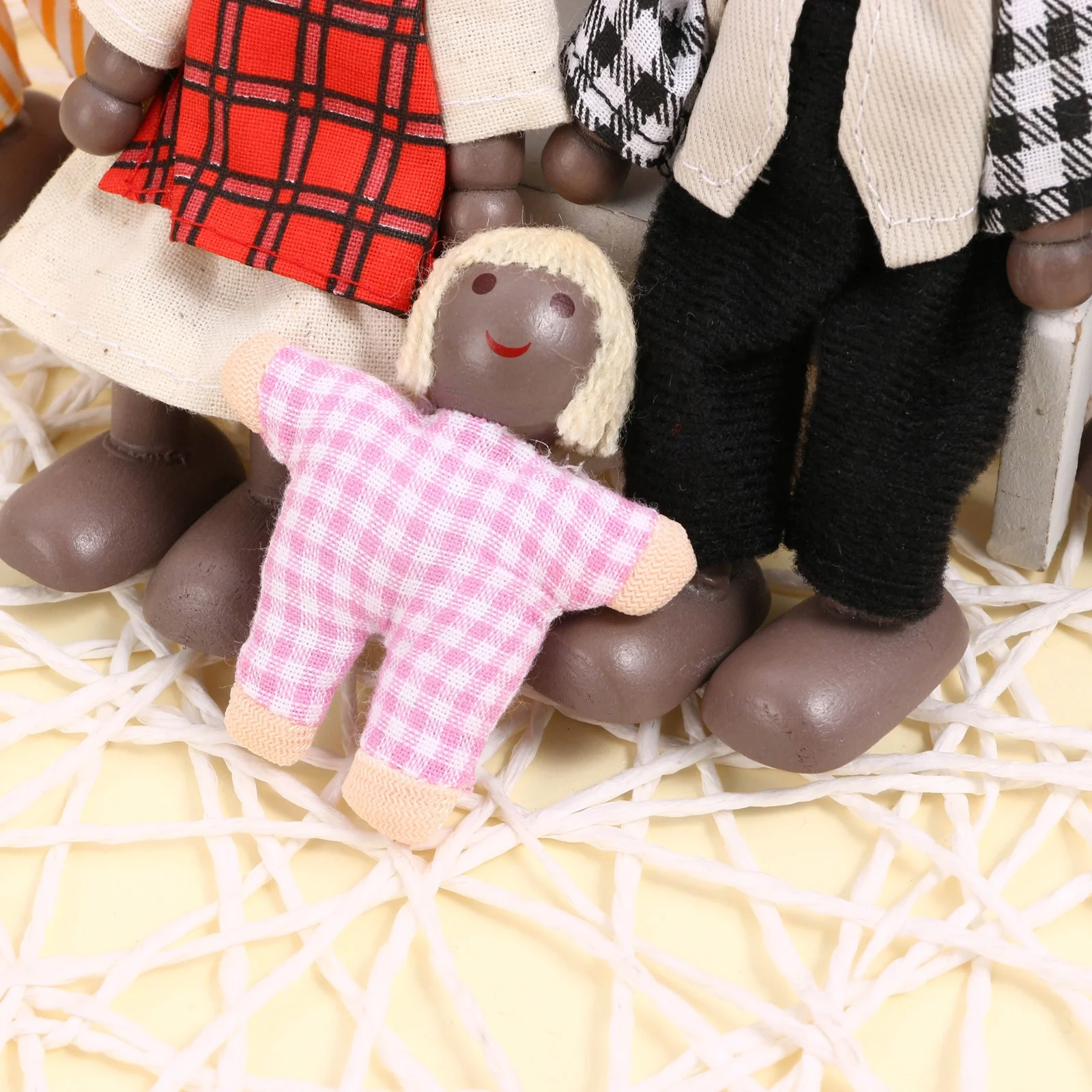 Kids Girls Lovely Happy Dolls Family Playset Wooden Figures Set of 7 African Toy