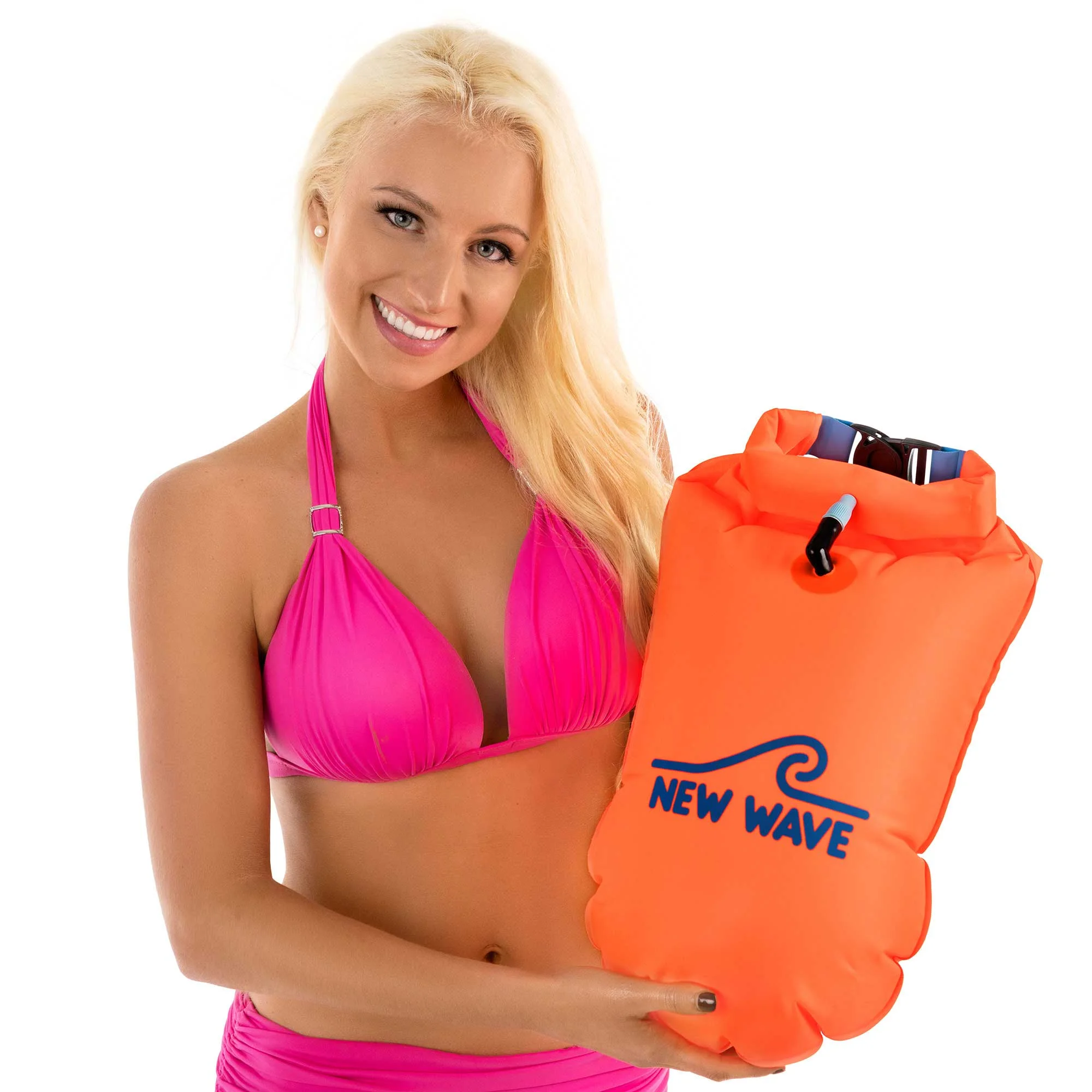 New Wave Swim Buoy - 20 liter Nylon TPU Orange - Drybag Swim Float for Open Water Swimming & Triathlon Swim Training