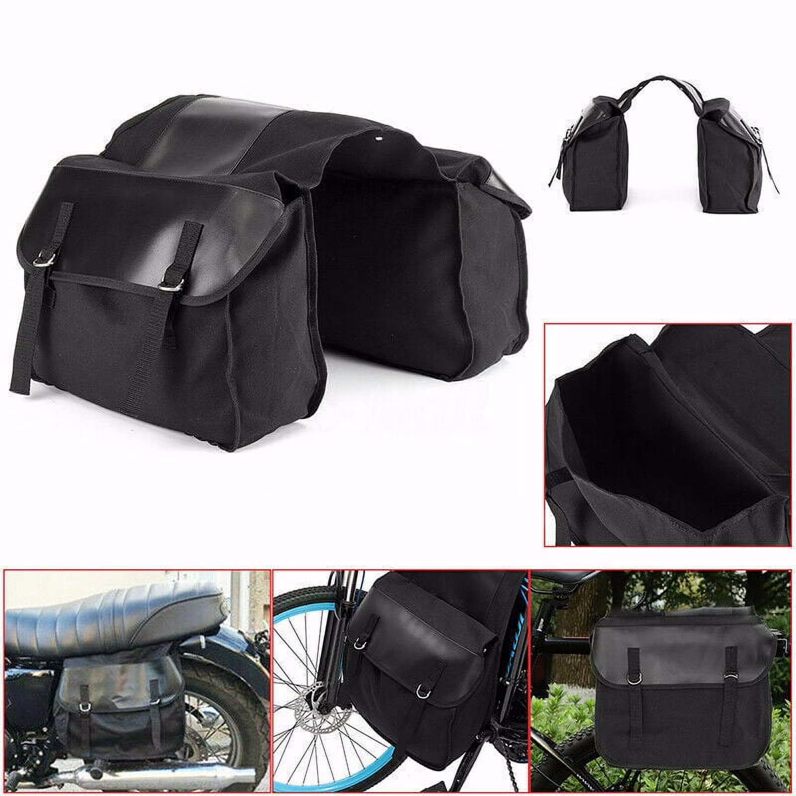 Motorcycle Touring Saddle Bag Black Canvas Waterproof Panniers Motorbike Luggage