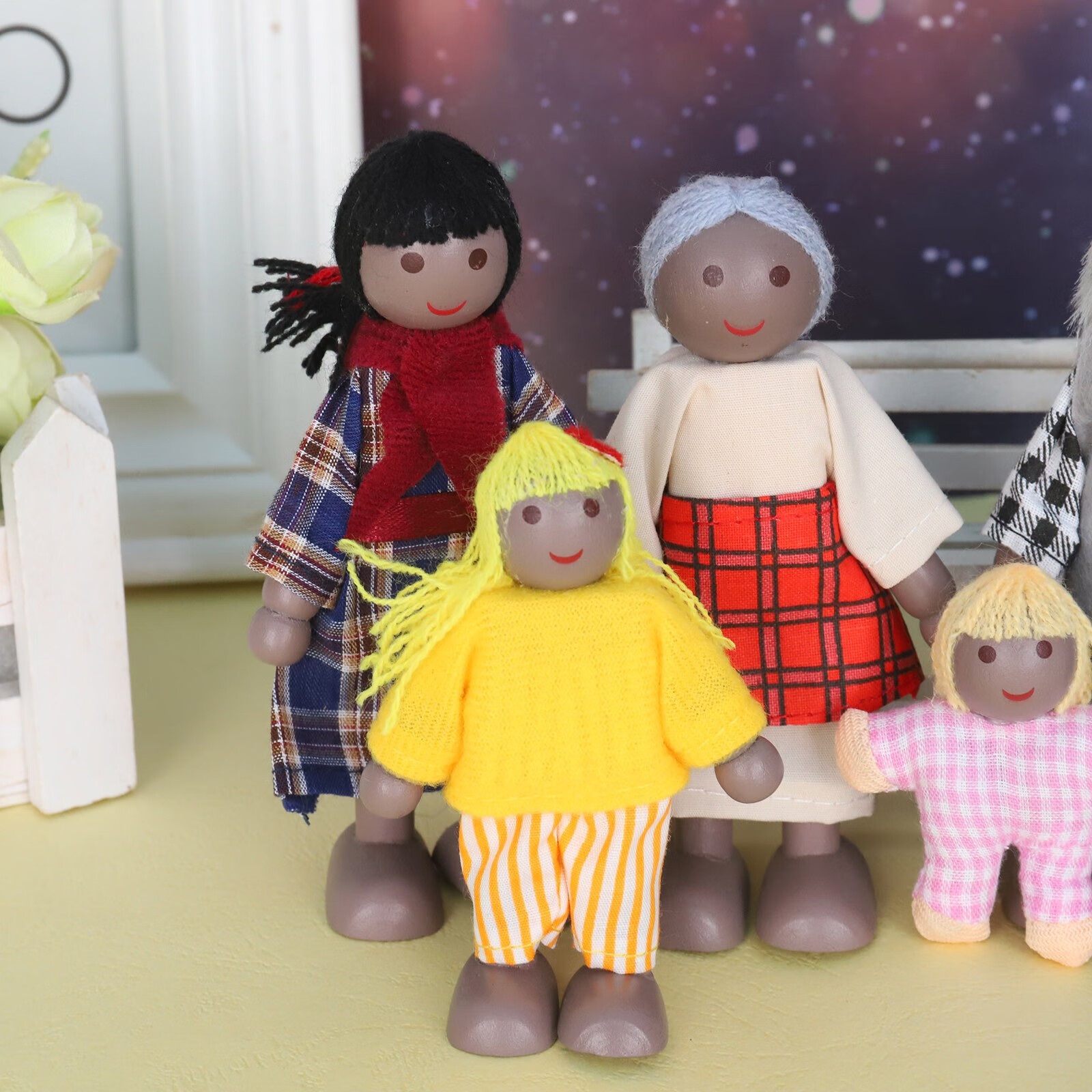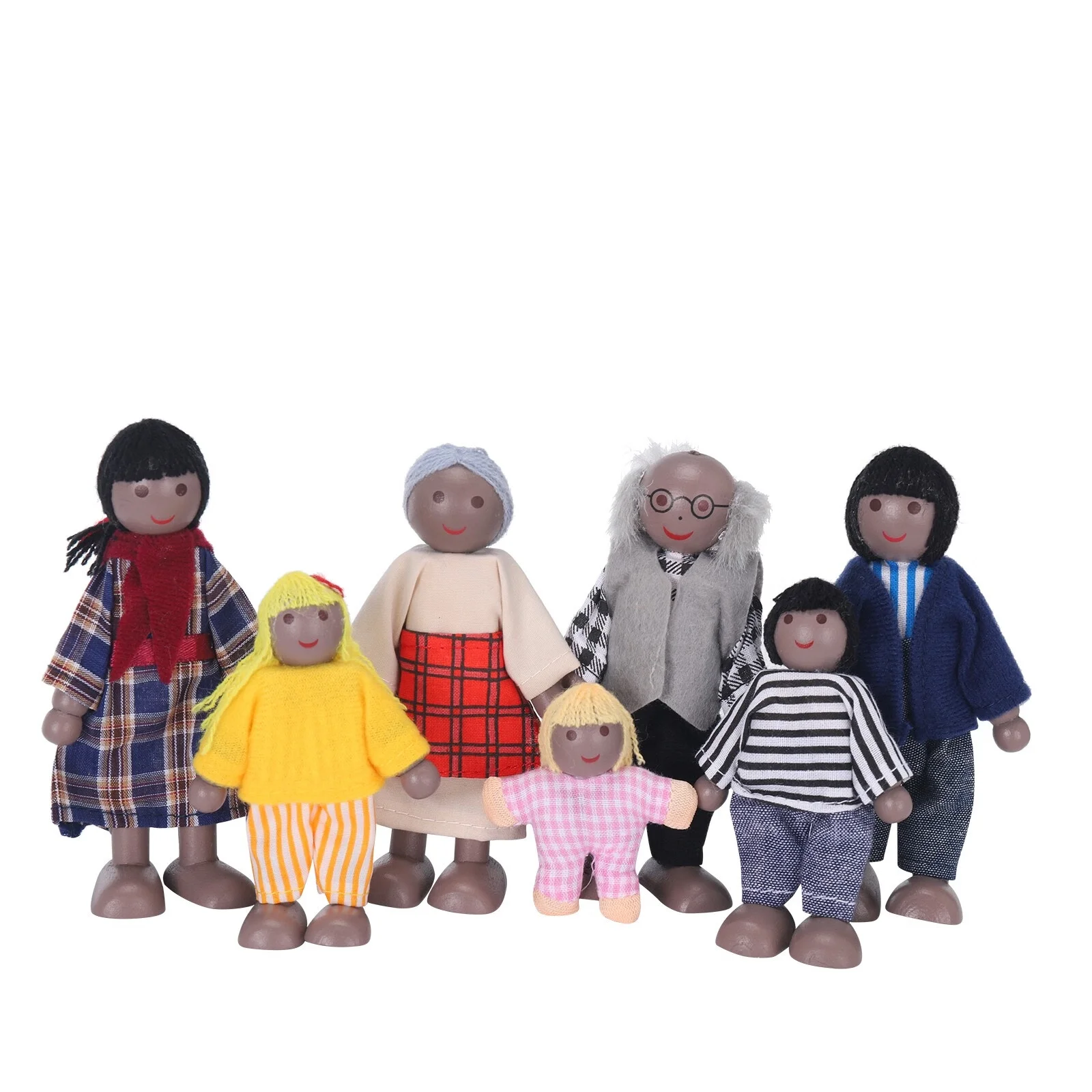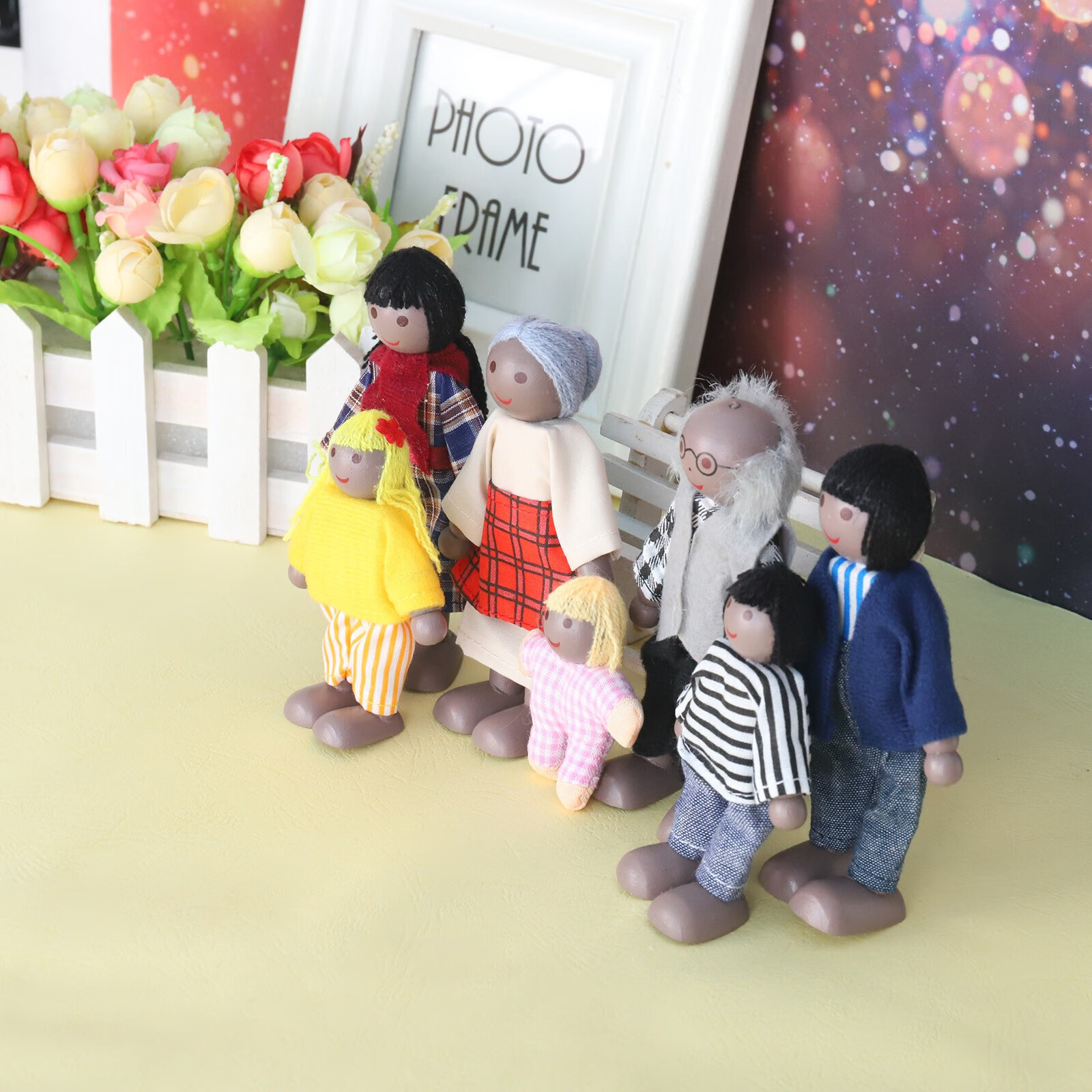 NUOLUX 7pcs Wooden Dolls Pretend Play Set Dolls Family for Children Kids Figure Toy mini house Gift