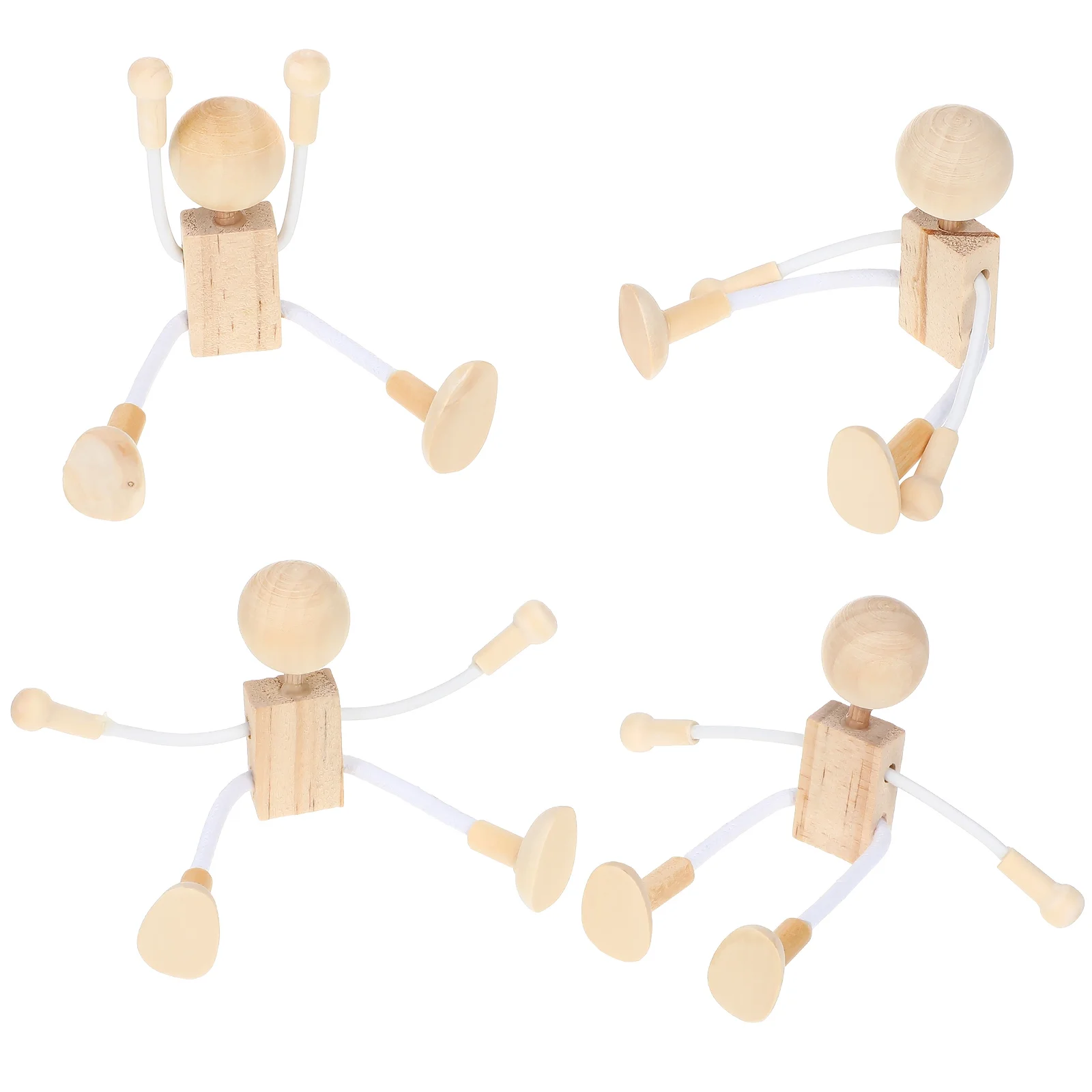NUOLUX 4 Pcs DIY Unfinished Dolls Shapeable Wooden Robot Toys Educational Toys Painting Crafts Desktop Ornaments