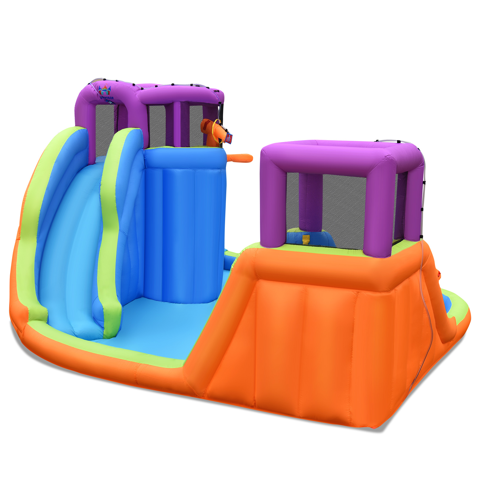 Topbuy Inflatable Water Park Double Water Slide Blow Up Bouncer with Climbing Wall