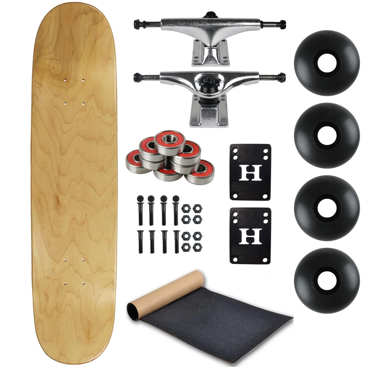 Blank Skateboard Complete 8.0" Natural with Silver Trucks and Black Wheels