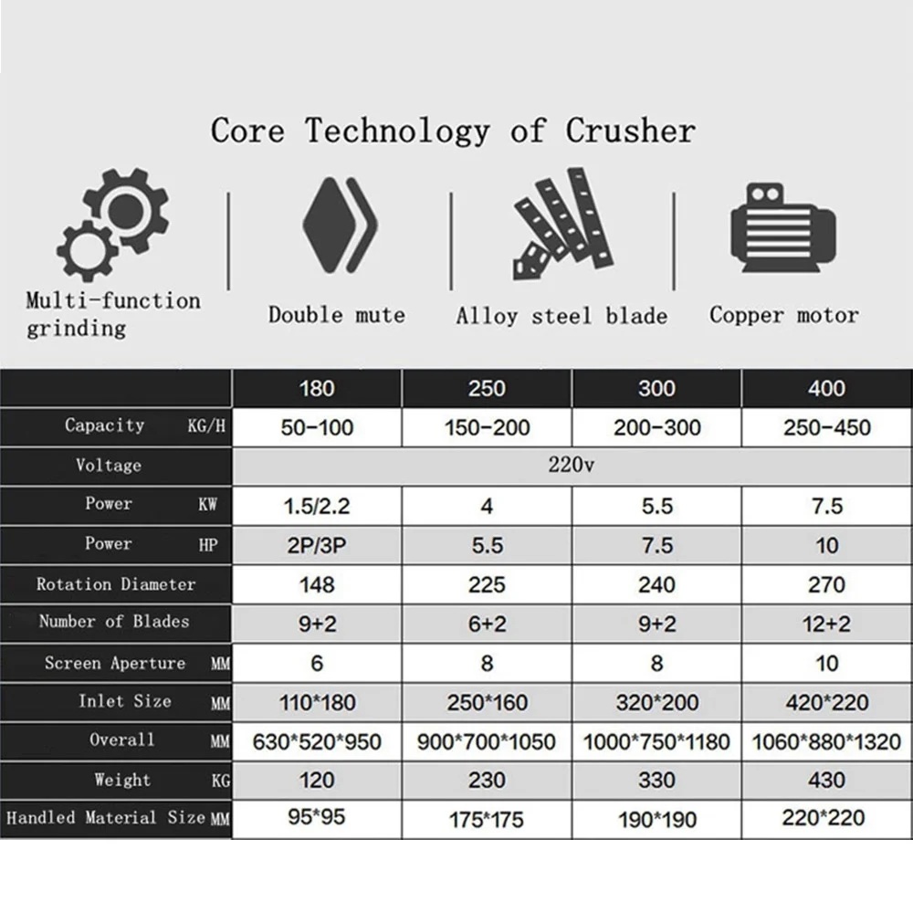 INTBUYING 220V Electric Plastic Shredder Recycling Disintegrator for Plastic Rubber Wood Grain