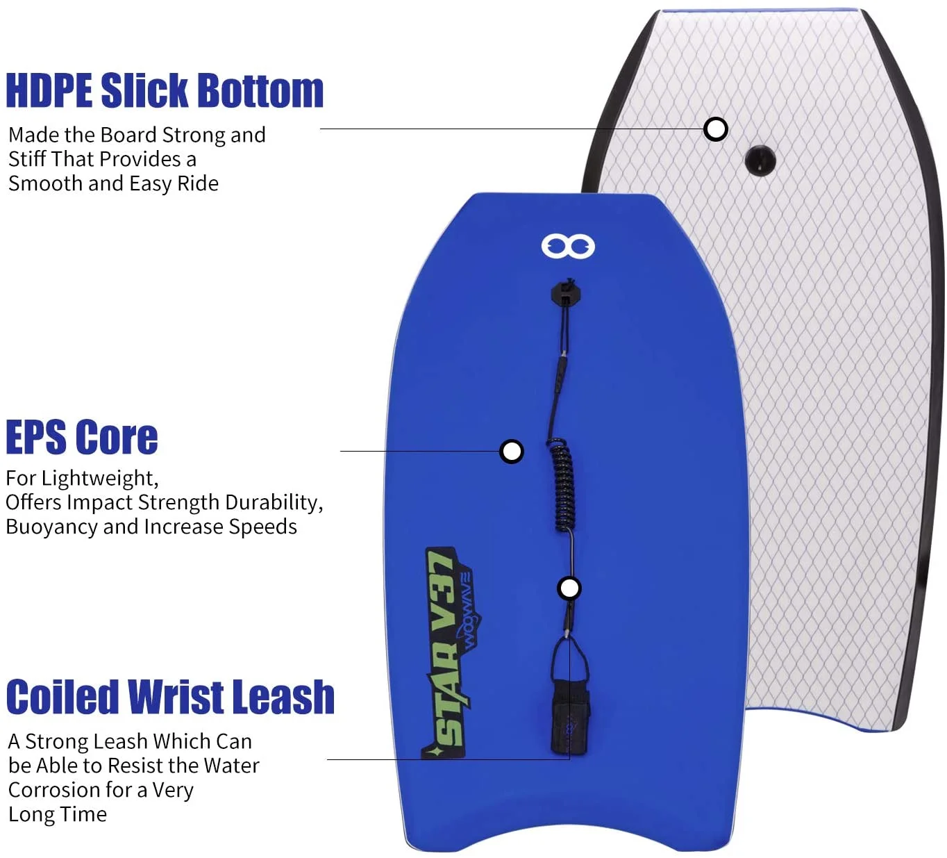 Campingsurvivals 37" Water-Skiing Body Board, Water Activities Surfboard, Yellow