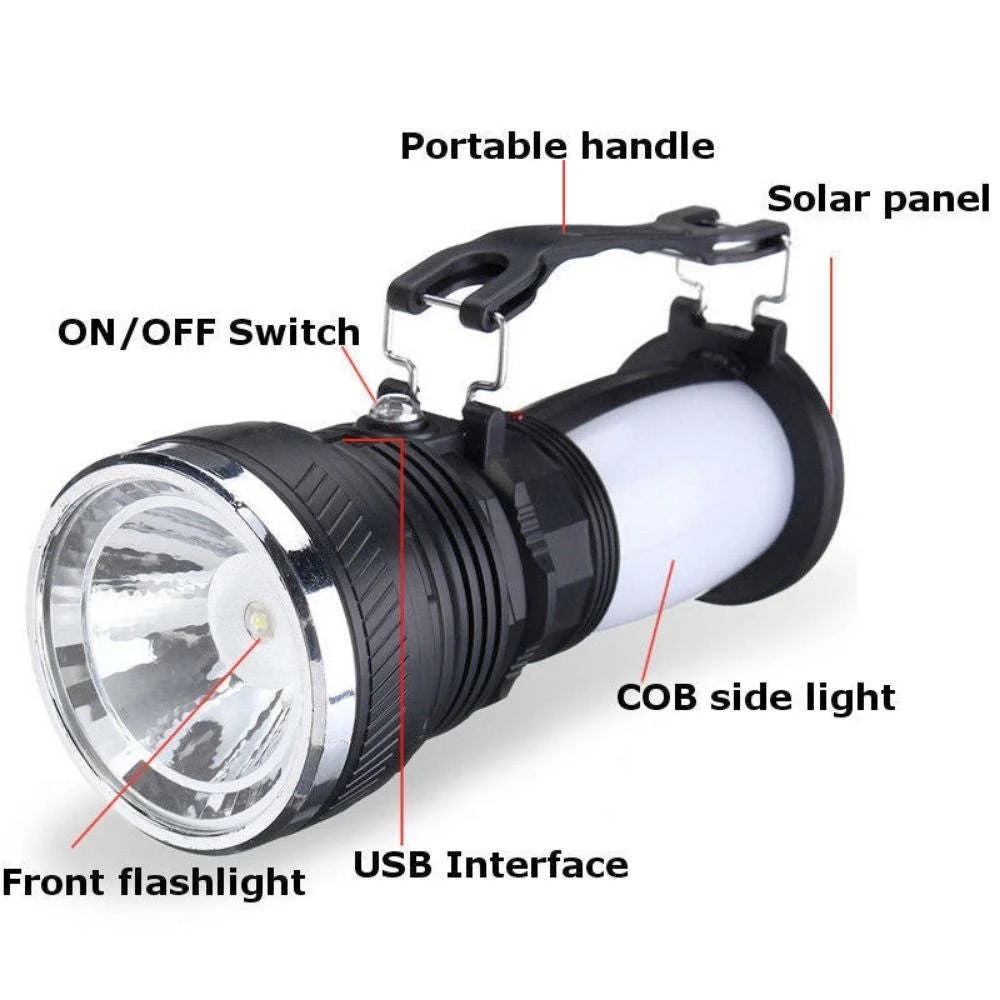 Multi Function Camping Lantern Rechargeable LED Flashlight Solar Power Camping Lantern Waterproof