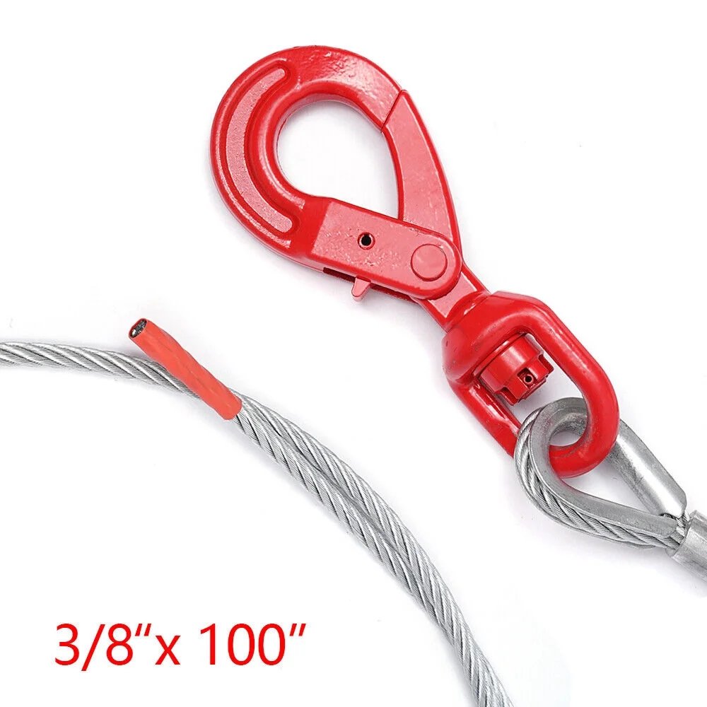 Miumaeov Wire Rope Steel Winch Cable 3/8" x 100" Self-Locking Swivel Hook Towing Wire