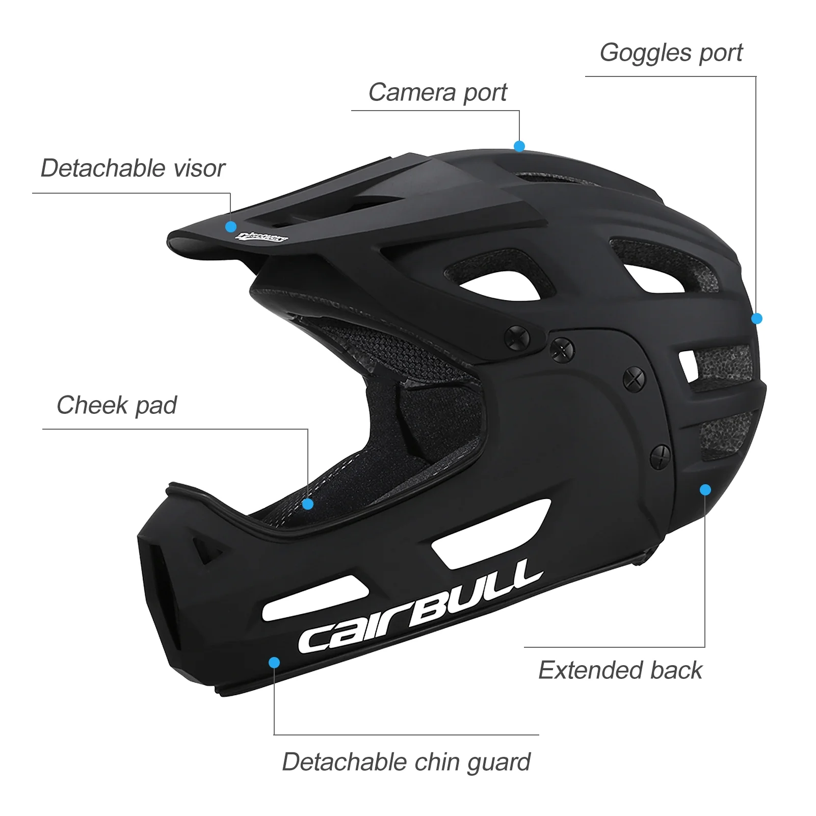 Carevas Full Face Bike Adult Cycling with Detachable Chin Guard and Visor for Mountain Biking
