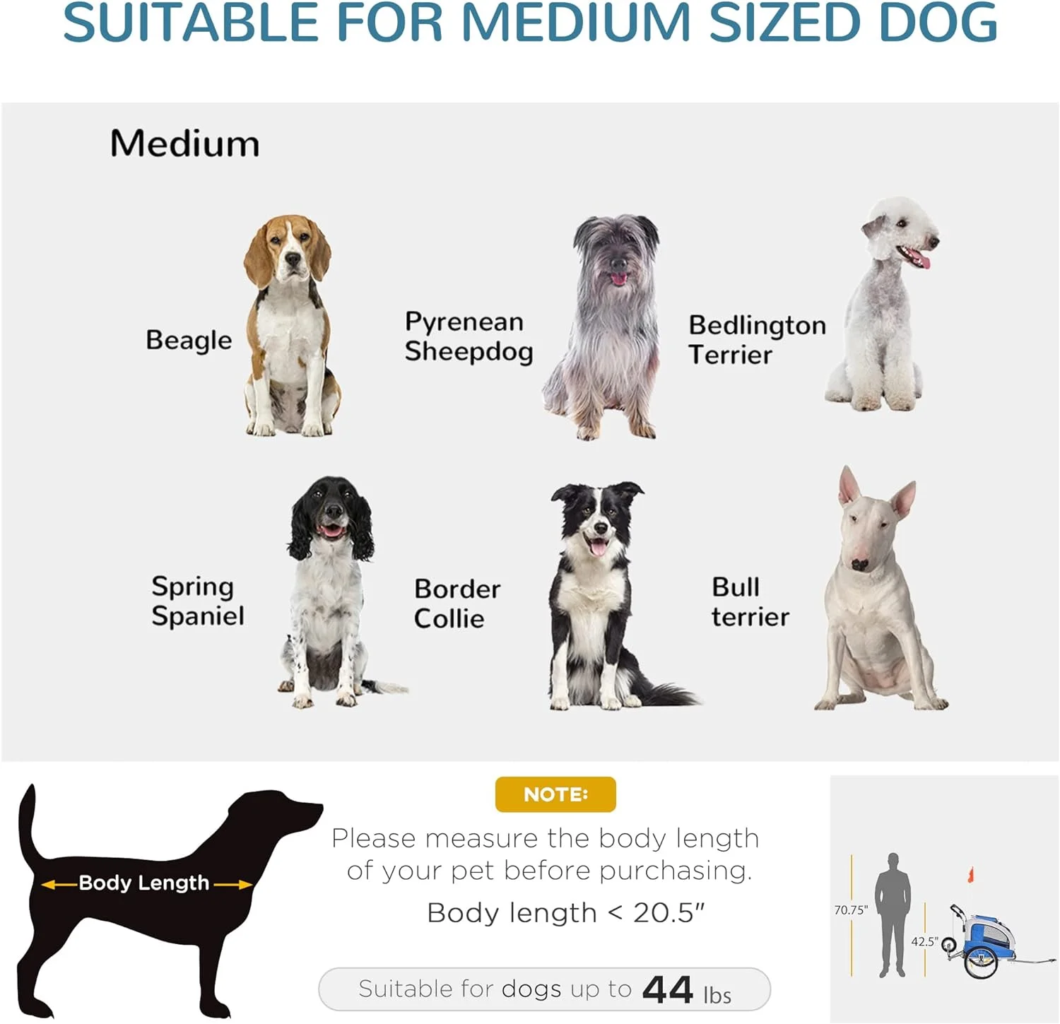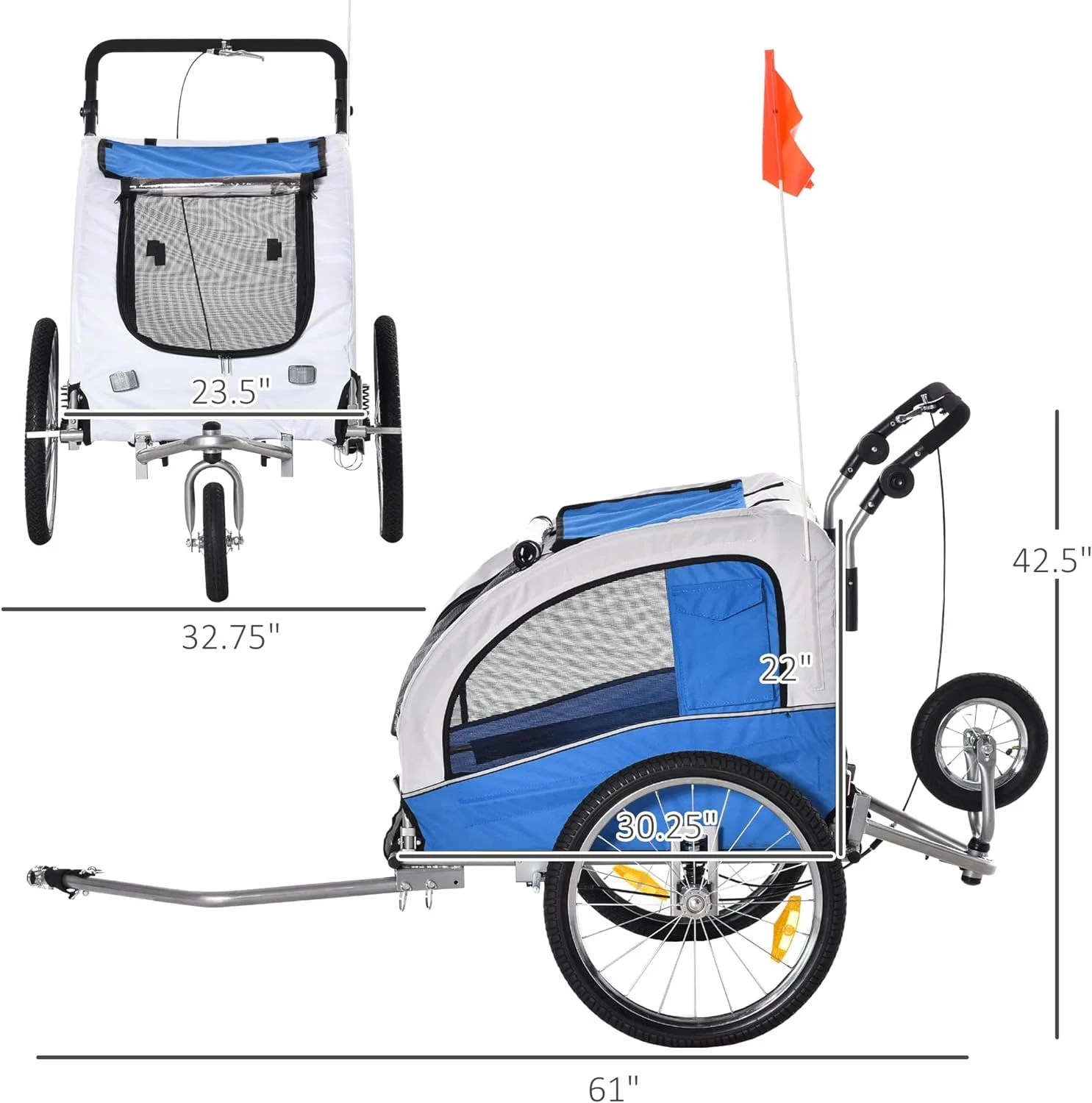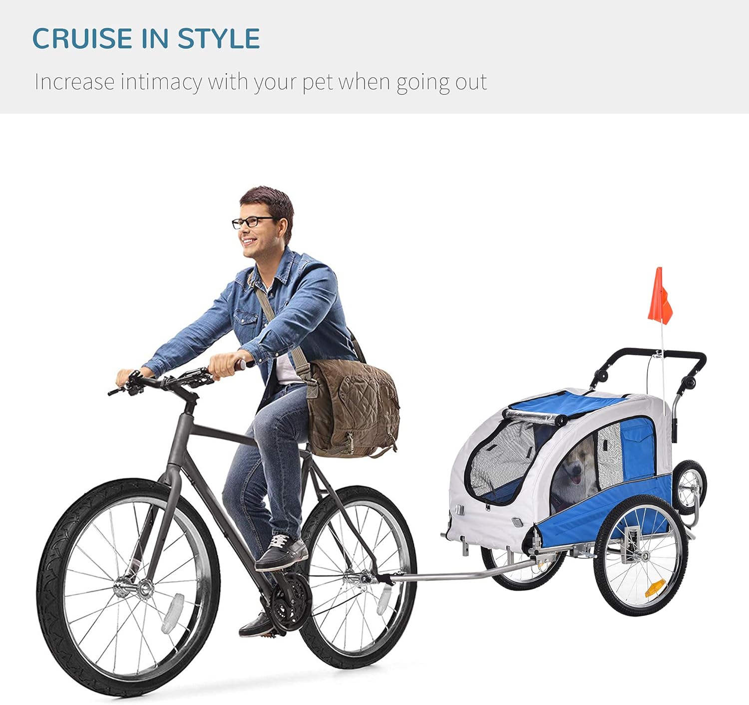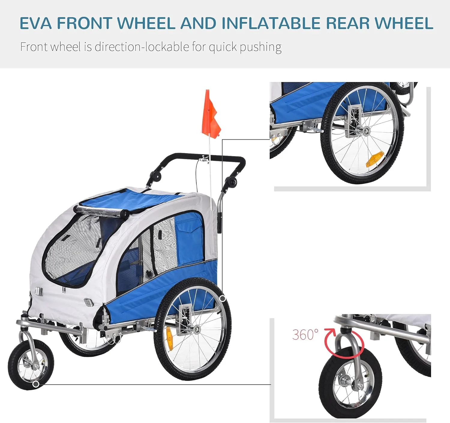Dog Bike Trailer 2-In-1 Pet Stroller With Canopy And Storage Pockets, Blue
