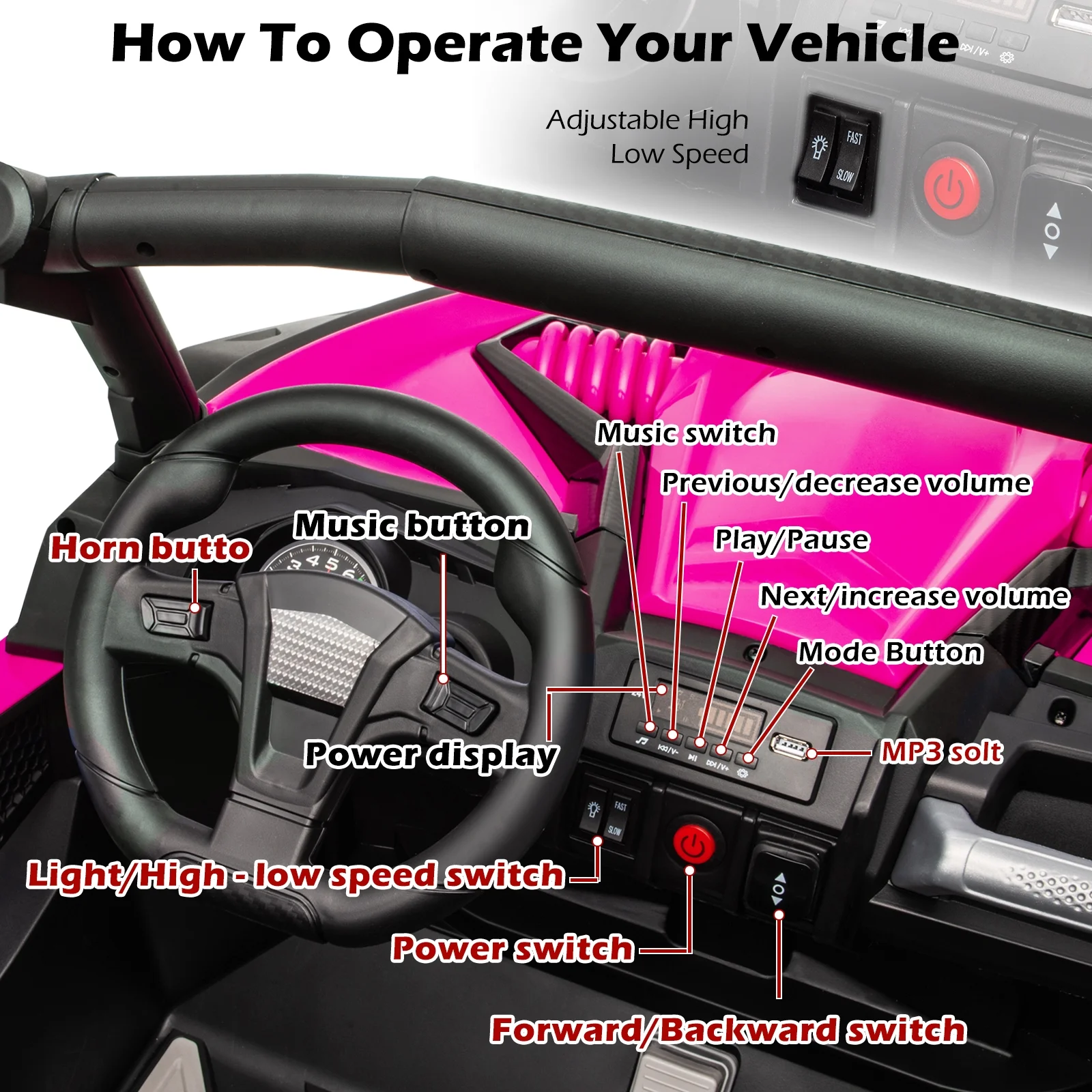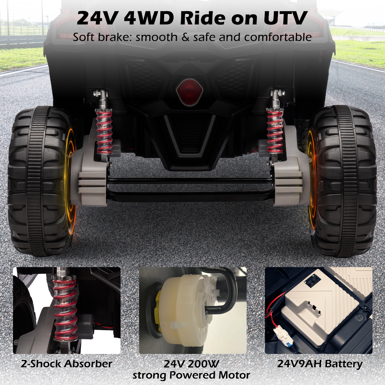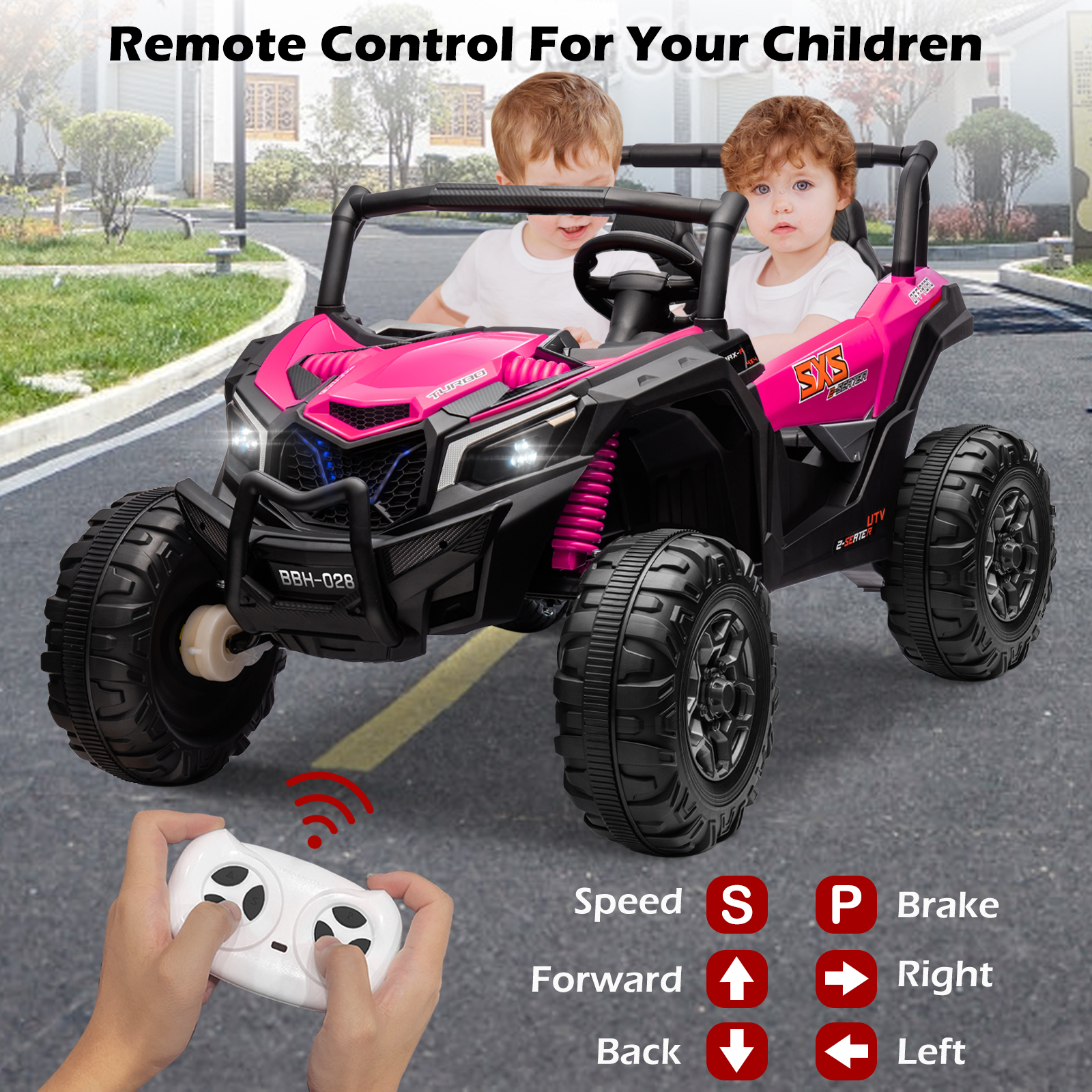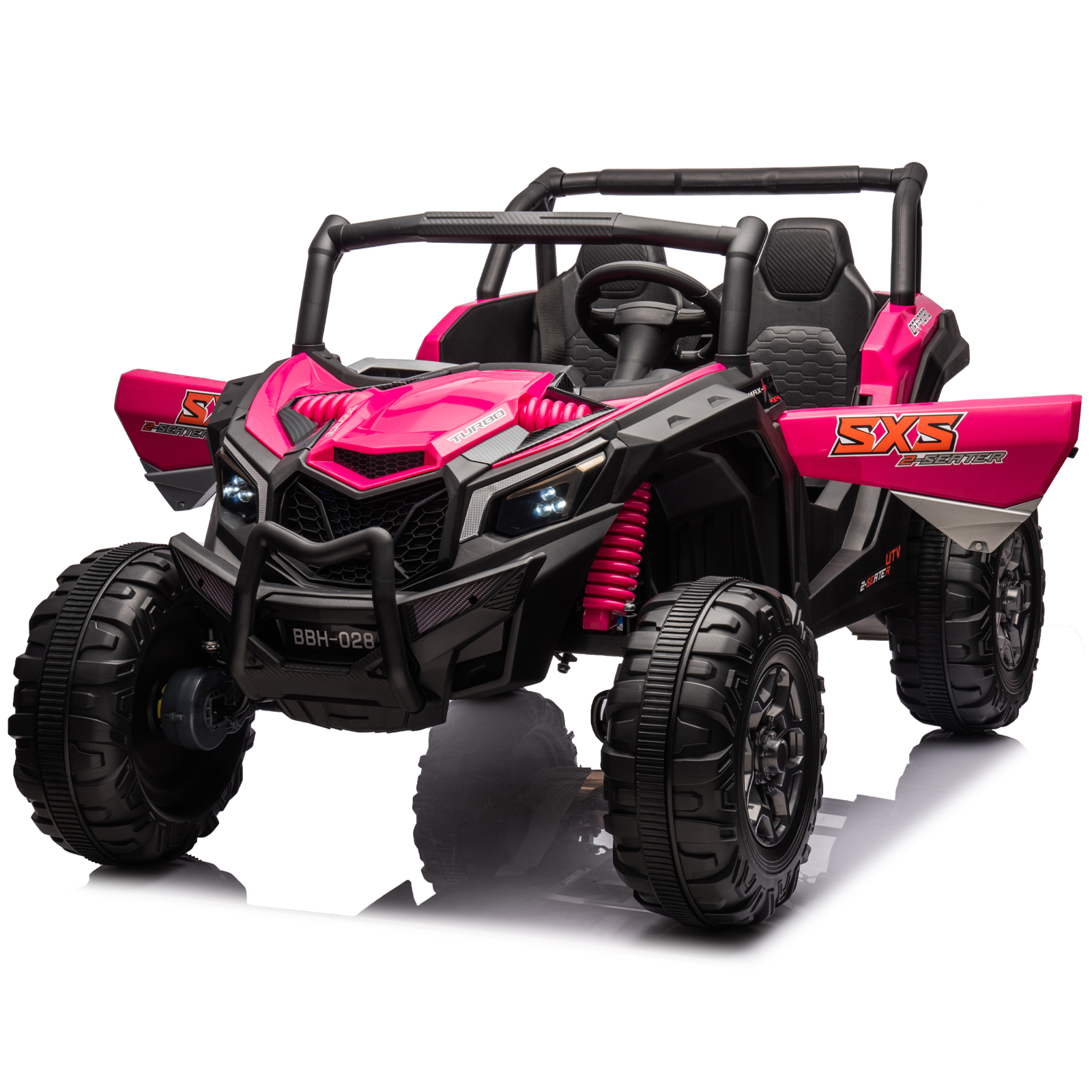 GLUTIA 24V Ride on Car UTV 2 Seater, 4x4 Electric Car Vehicles for Big Kids,4 Spring Absorbers - Pink