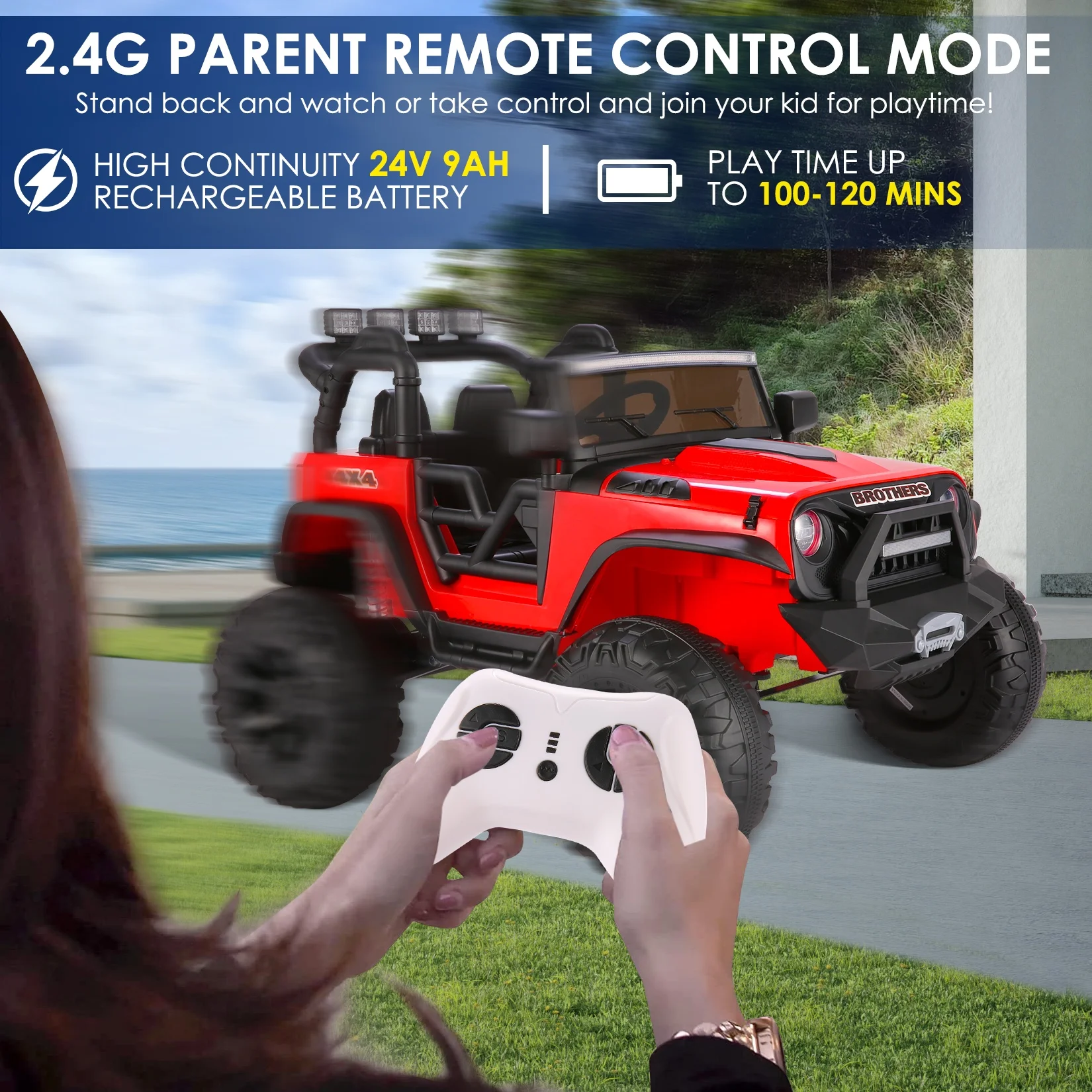 VIBESPARK 24V Kids Ride on Truck, 2 Seater Powered Ride on Toy Car with Remote