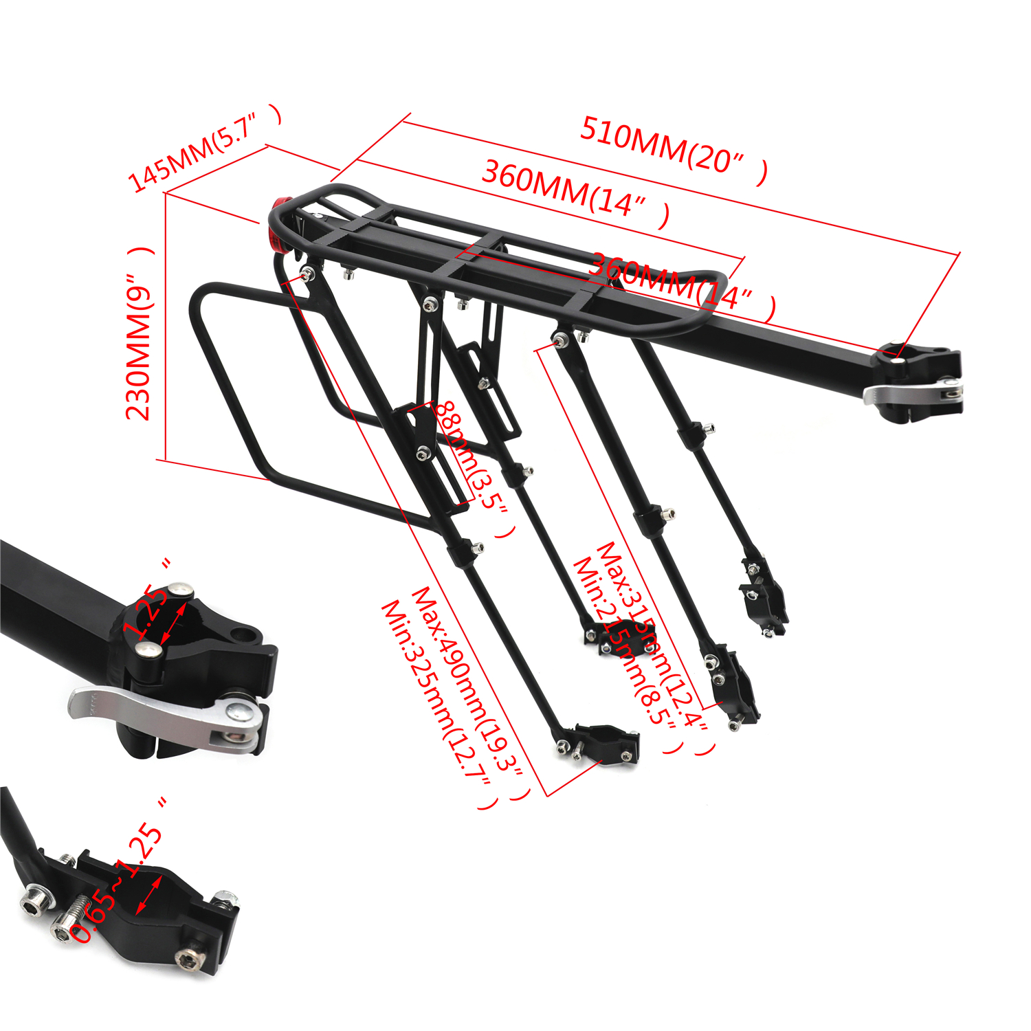 Bicycle Mountain Bike Rear Rack Seat Mount Luggage Carrier w/ Light Flash Up45KG