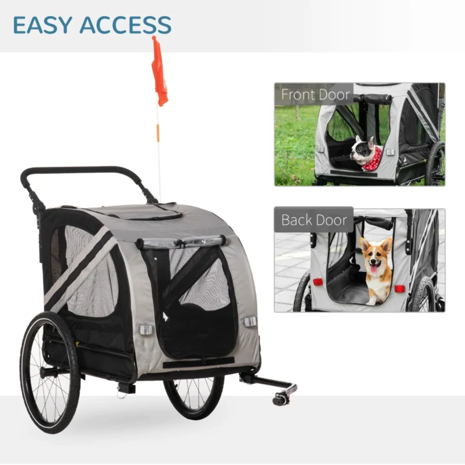 Aosom 2-In-1 Dog Bike Trailer Stroller w/ Universal Wheel Reflector Flag