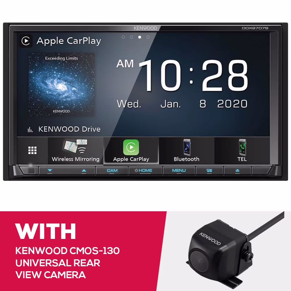 New Kenwood DDX9707S 6.95 Inch DVD Receiver and CMOS-130 Universal Rear View Camera