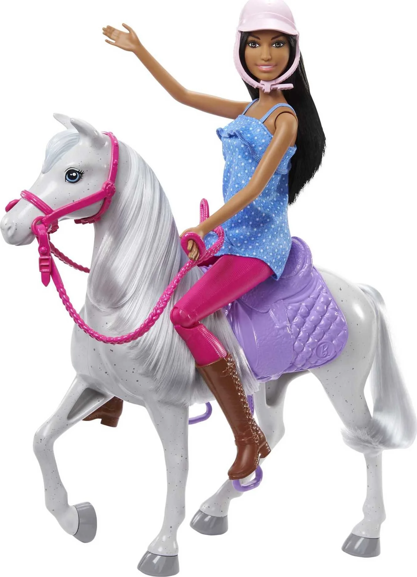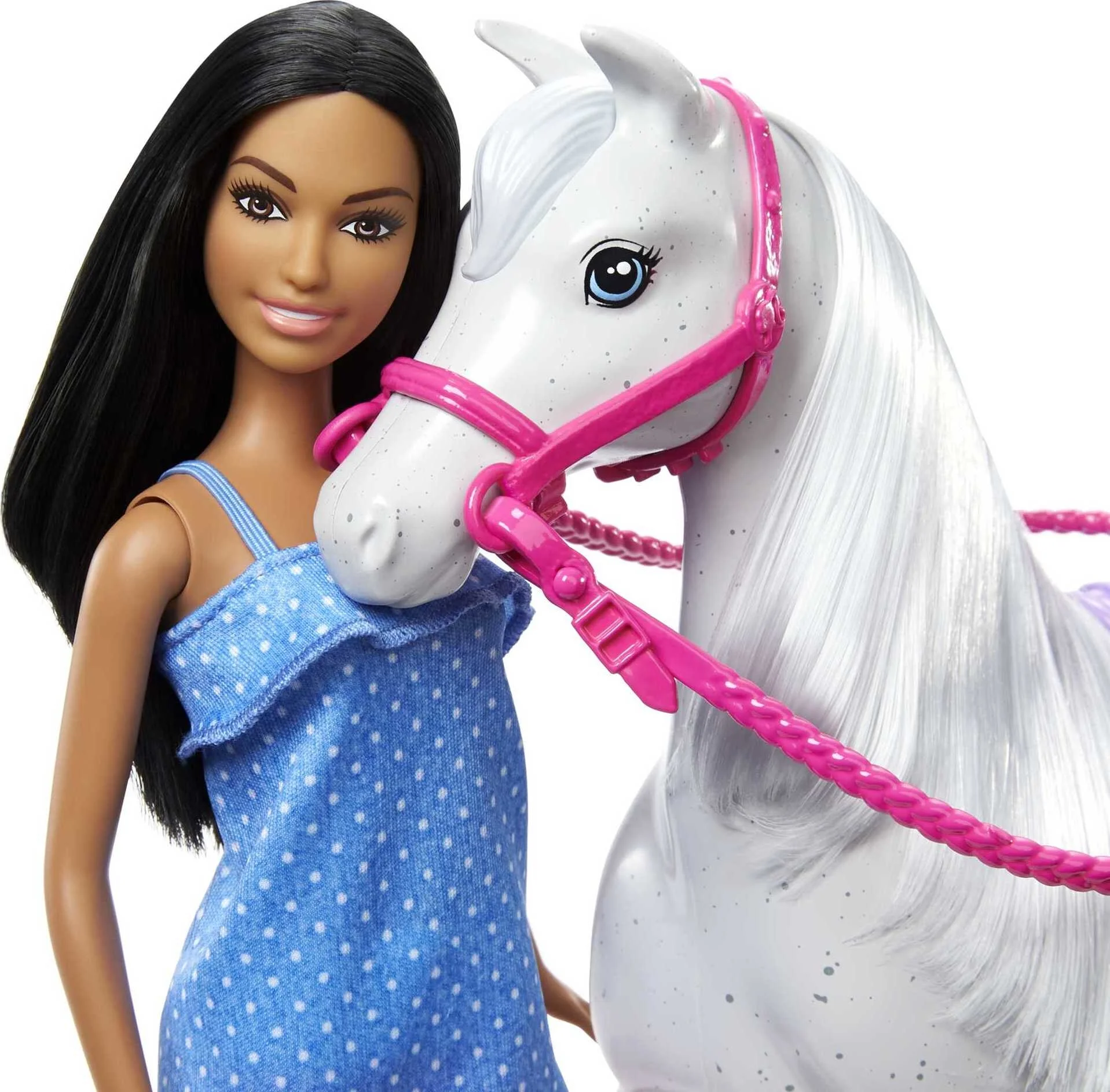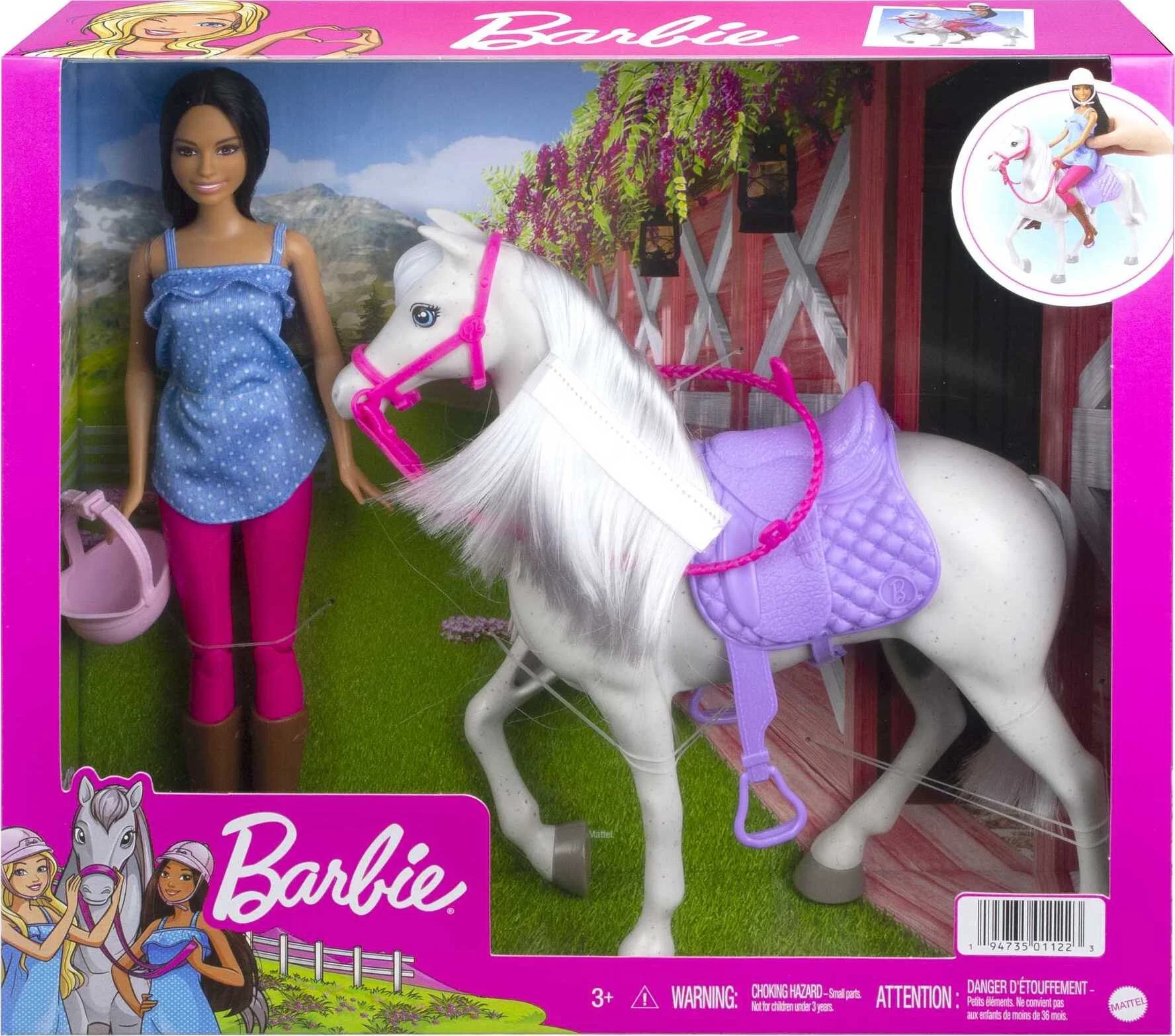 Barbie Doll & Horse Set with Brunette Doll in Riding Outfit, White Horse, Saddle, Bridle & Reins