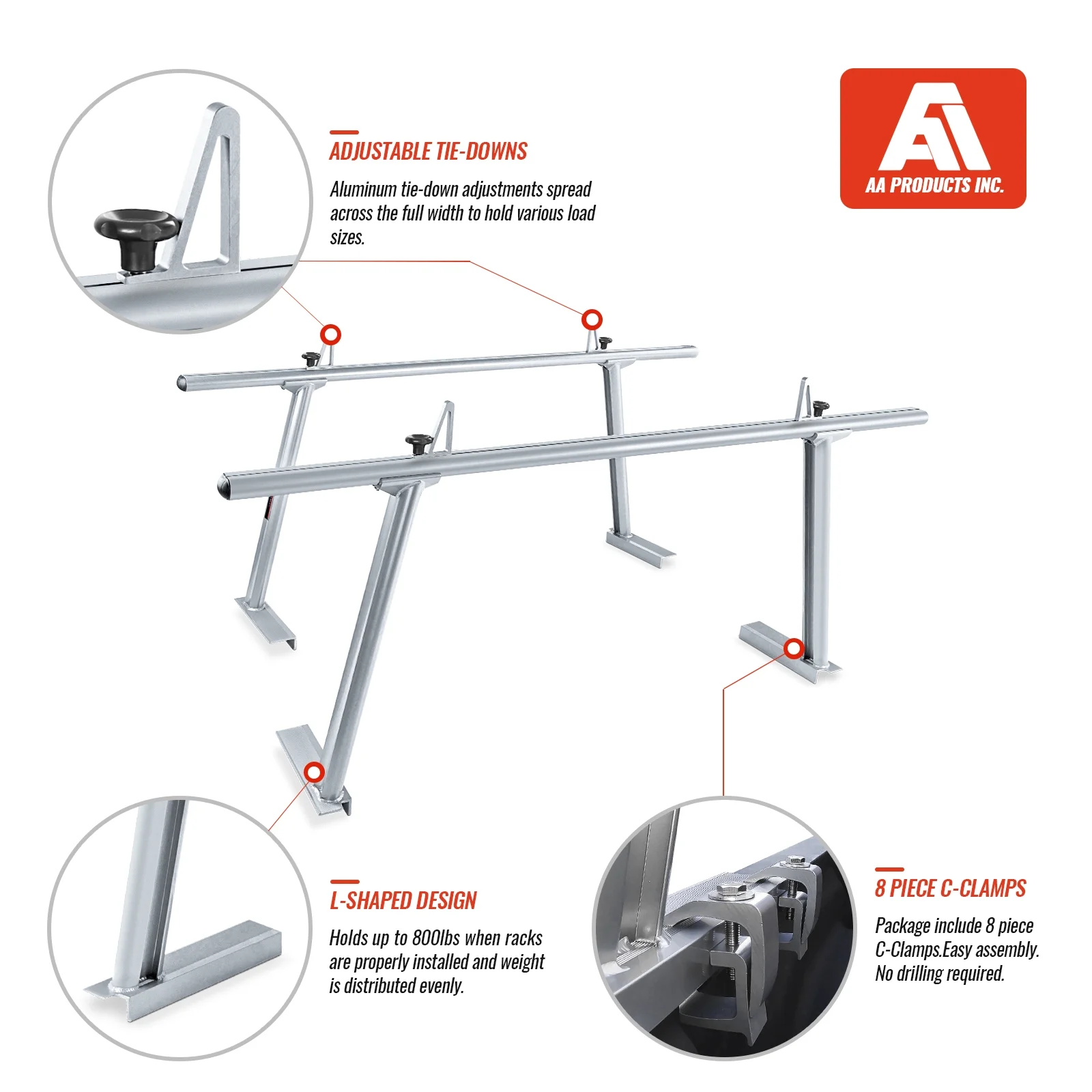 TMS 800 Ibs Capacity Extendable Universal Steel Pick-Up Truck Ladder Rack Utility Two Bar Set
