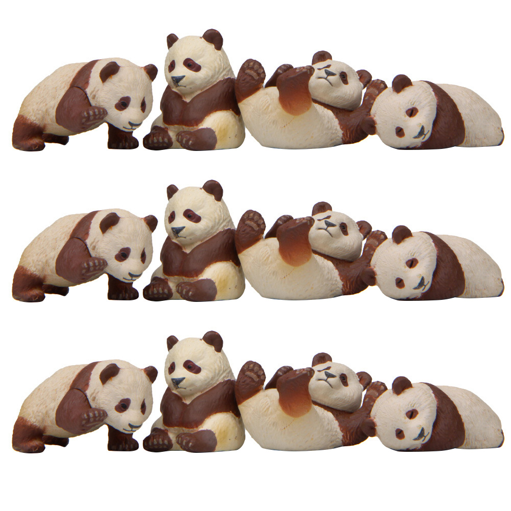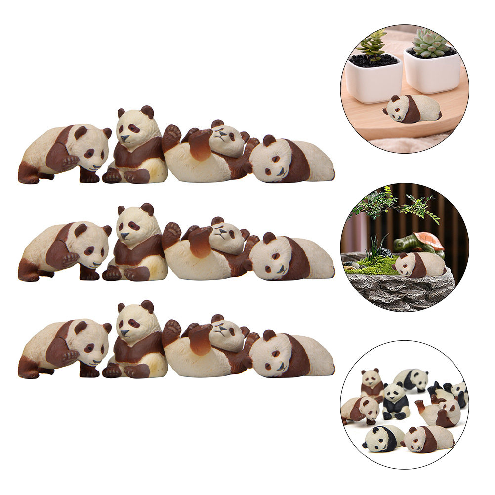 12Pcs Miniature Panda Adornments Decorative Animal Models Creative Panda Dolls