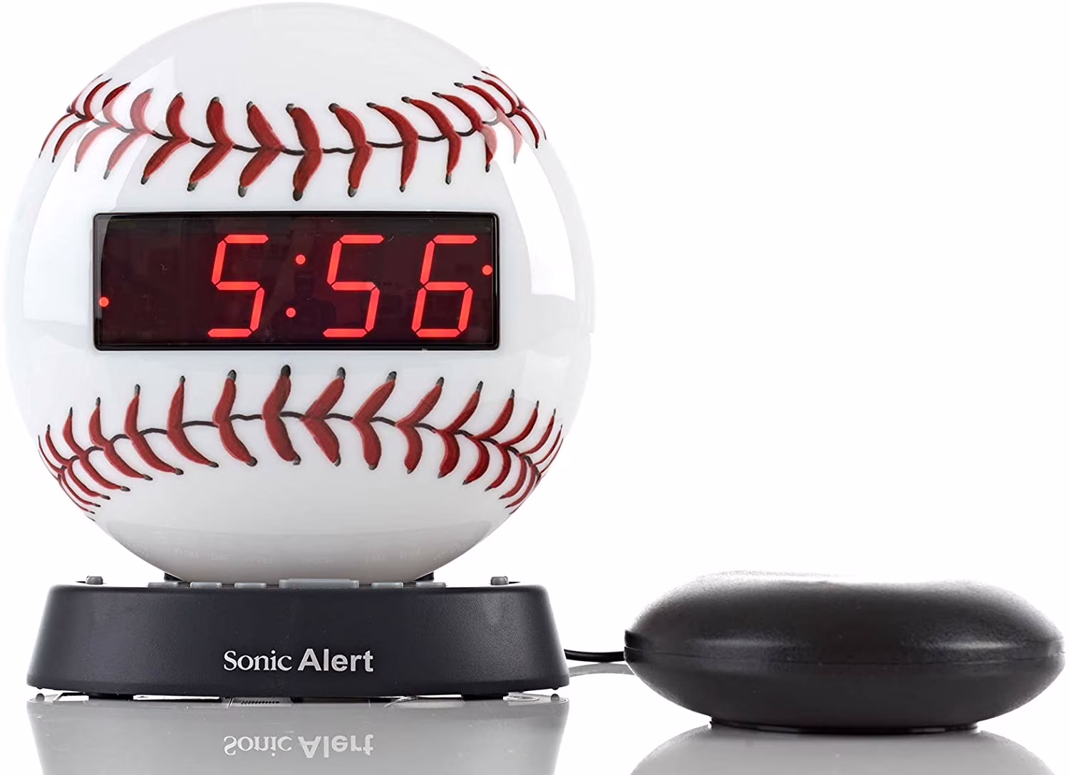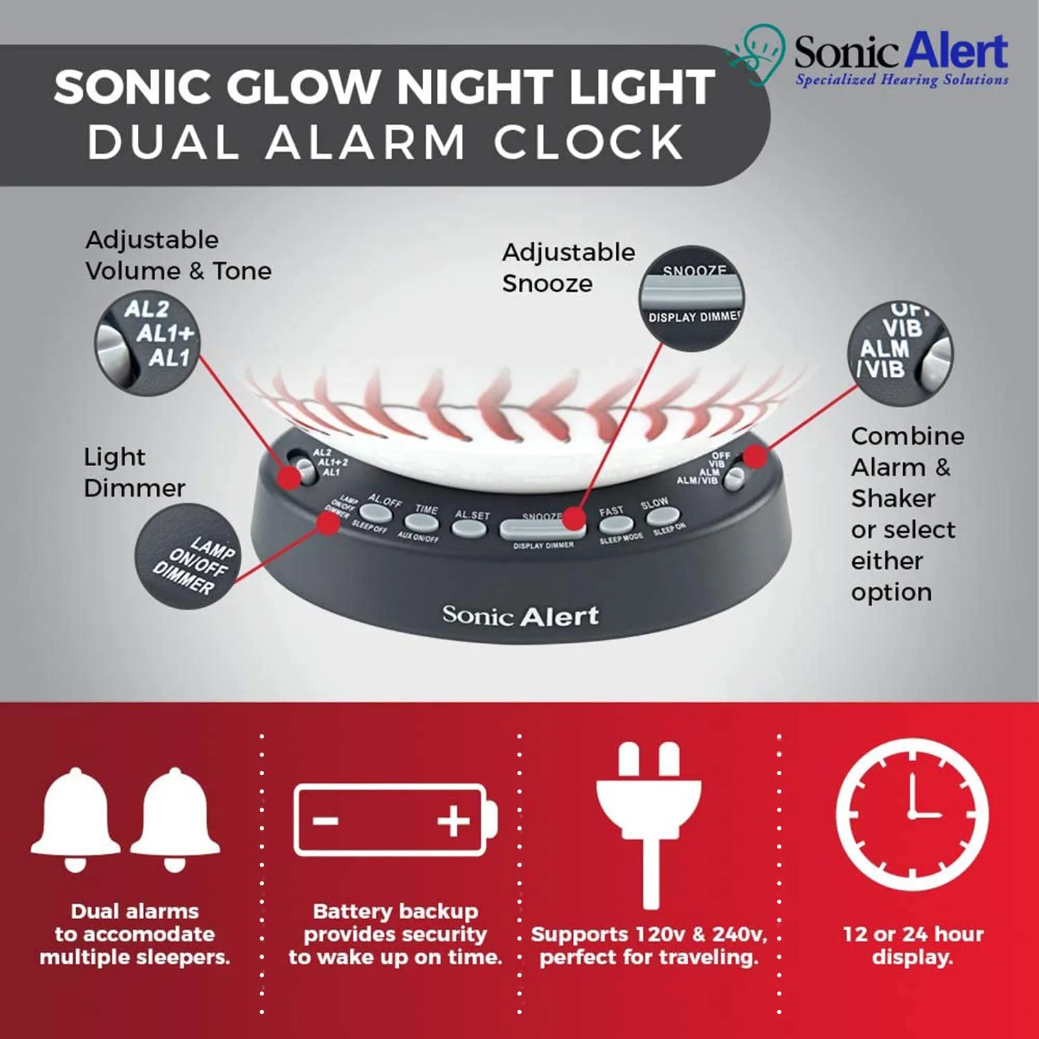Sonic Alert - Glow Baseball Alarm Clock with Super Bed Shaker, Digital Display Technology - White