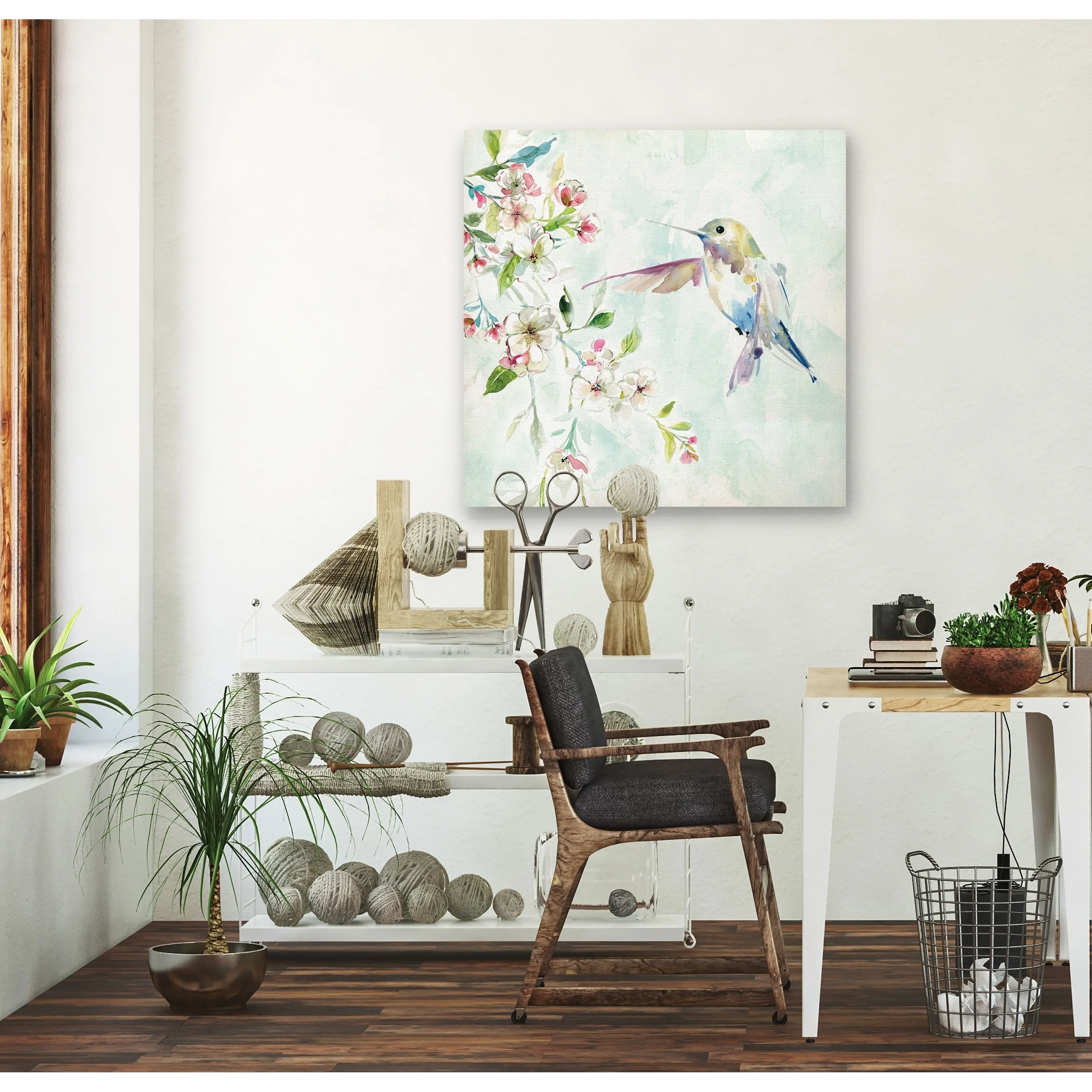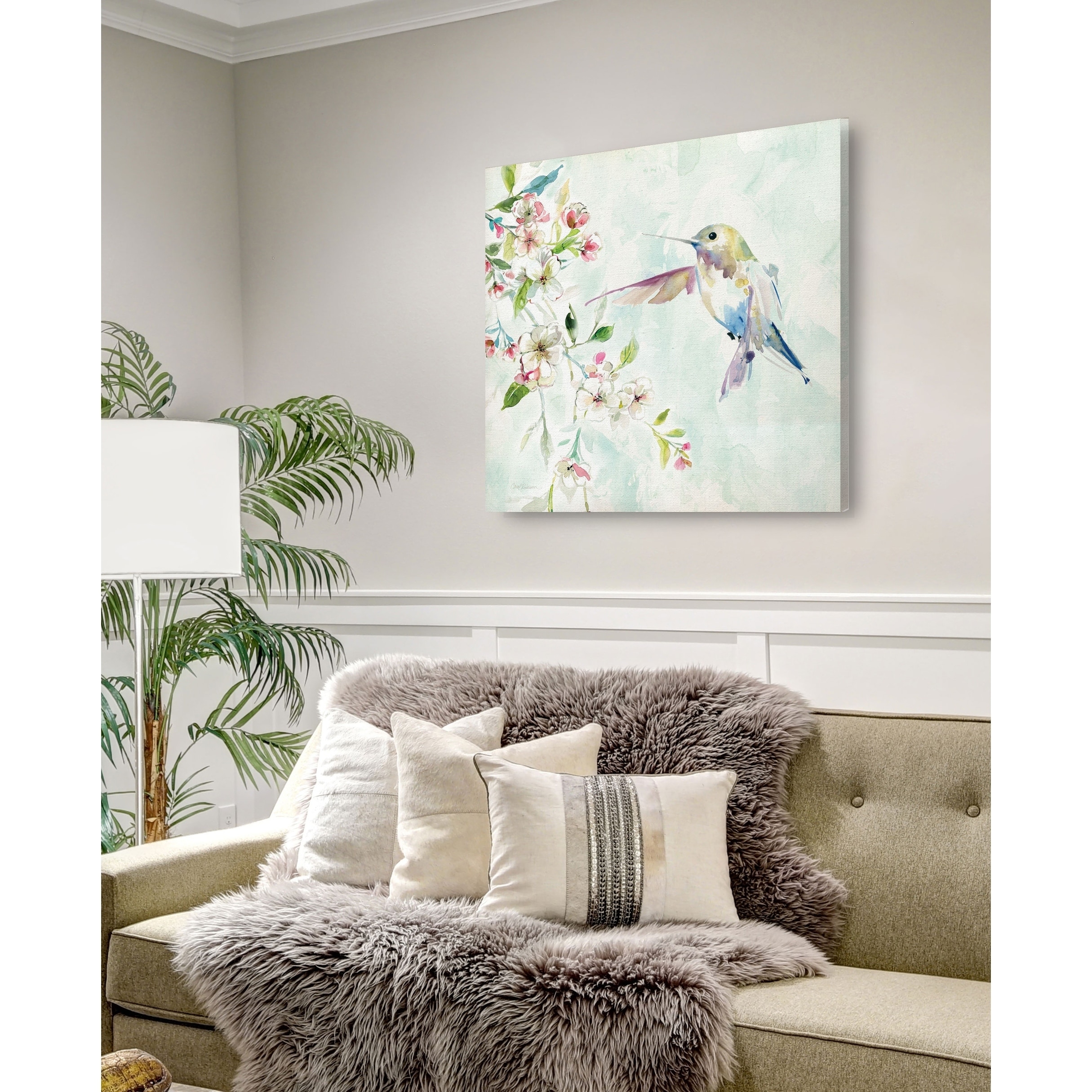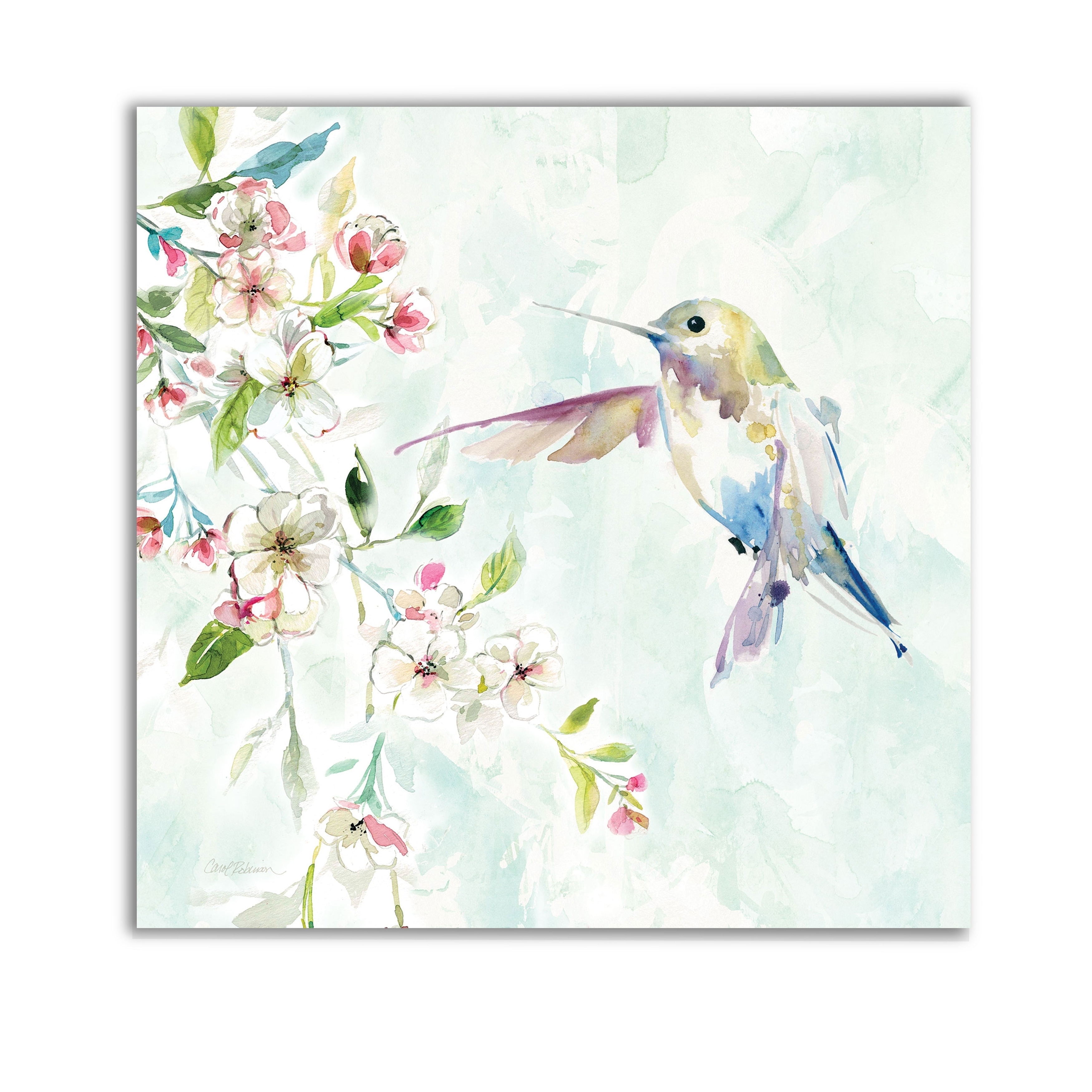 Wexford Home Hummingbird IV -Gallery Wrapped Canvas - yellow, blue, green, red, black, white 10x10