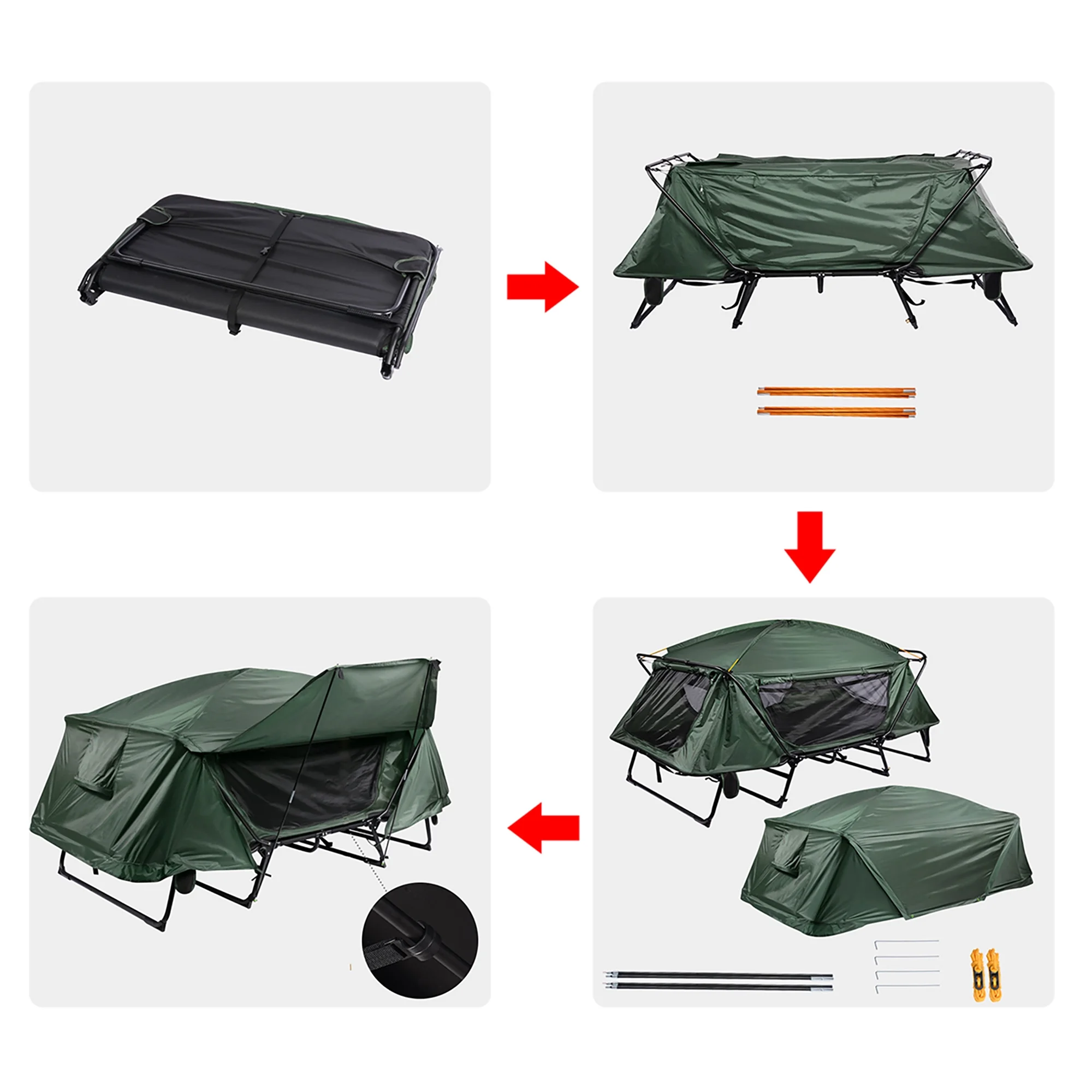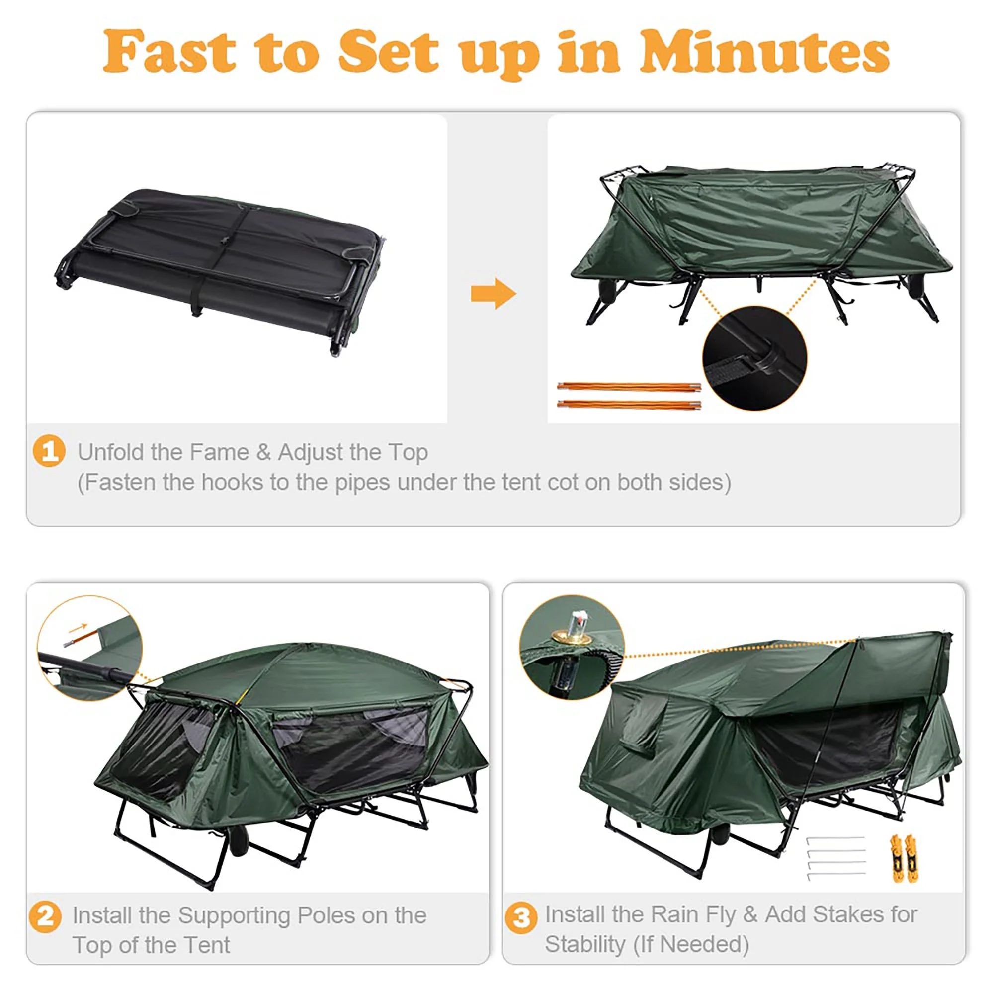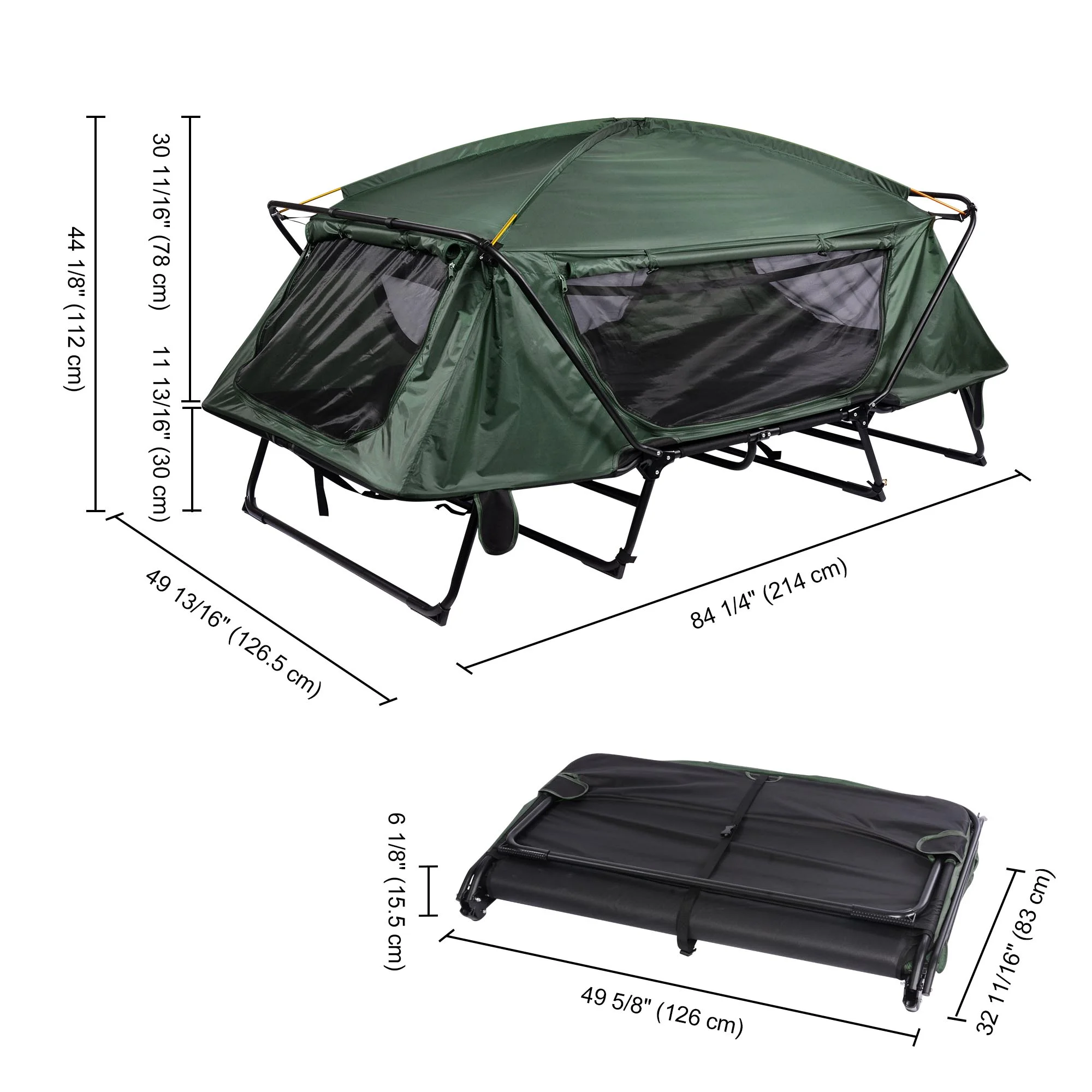 Yescom Double Tent Cot Folding Portable Waterproof Camping Hiking Bed for 2 Person, Green with Rain Fly Bag
