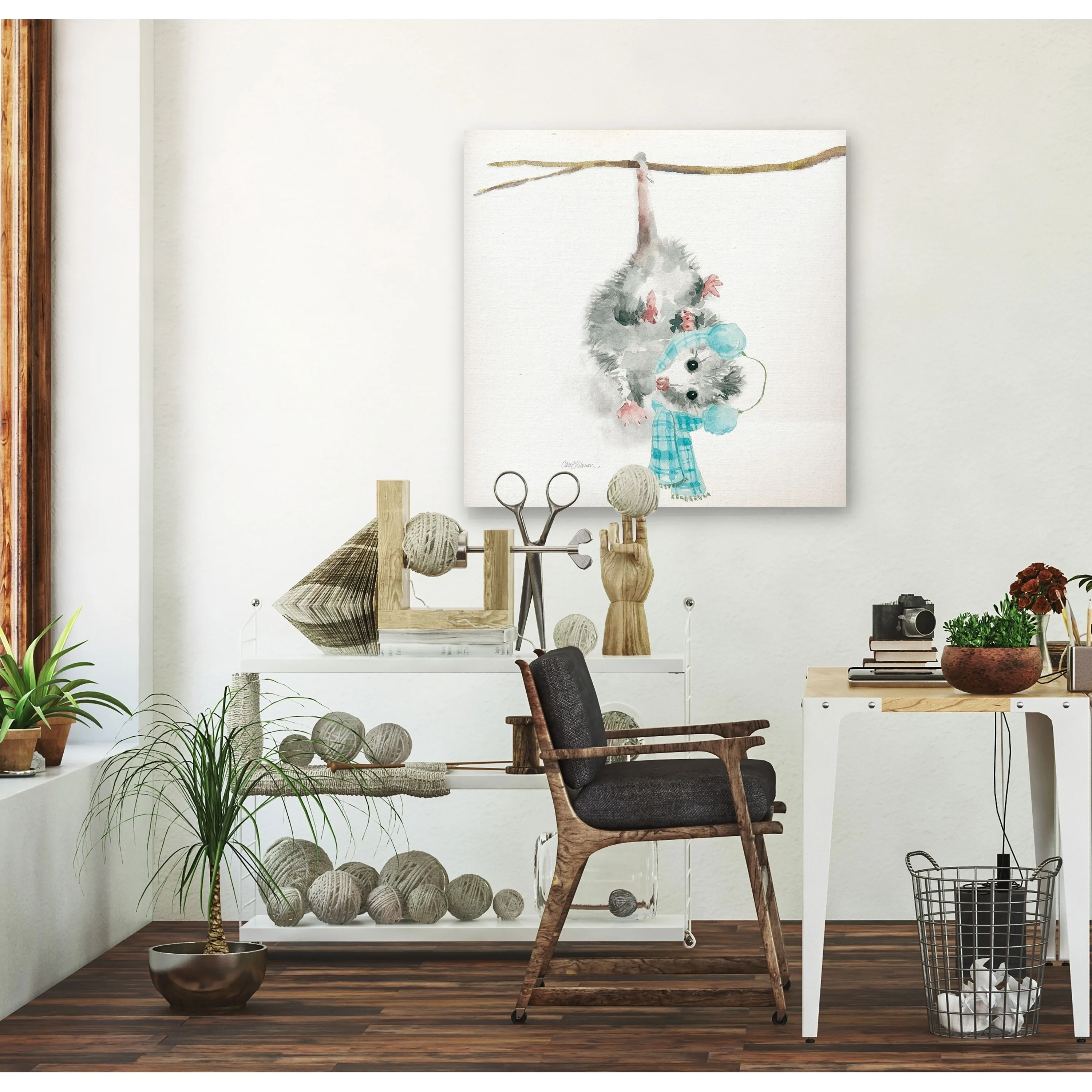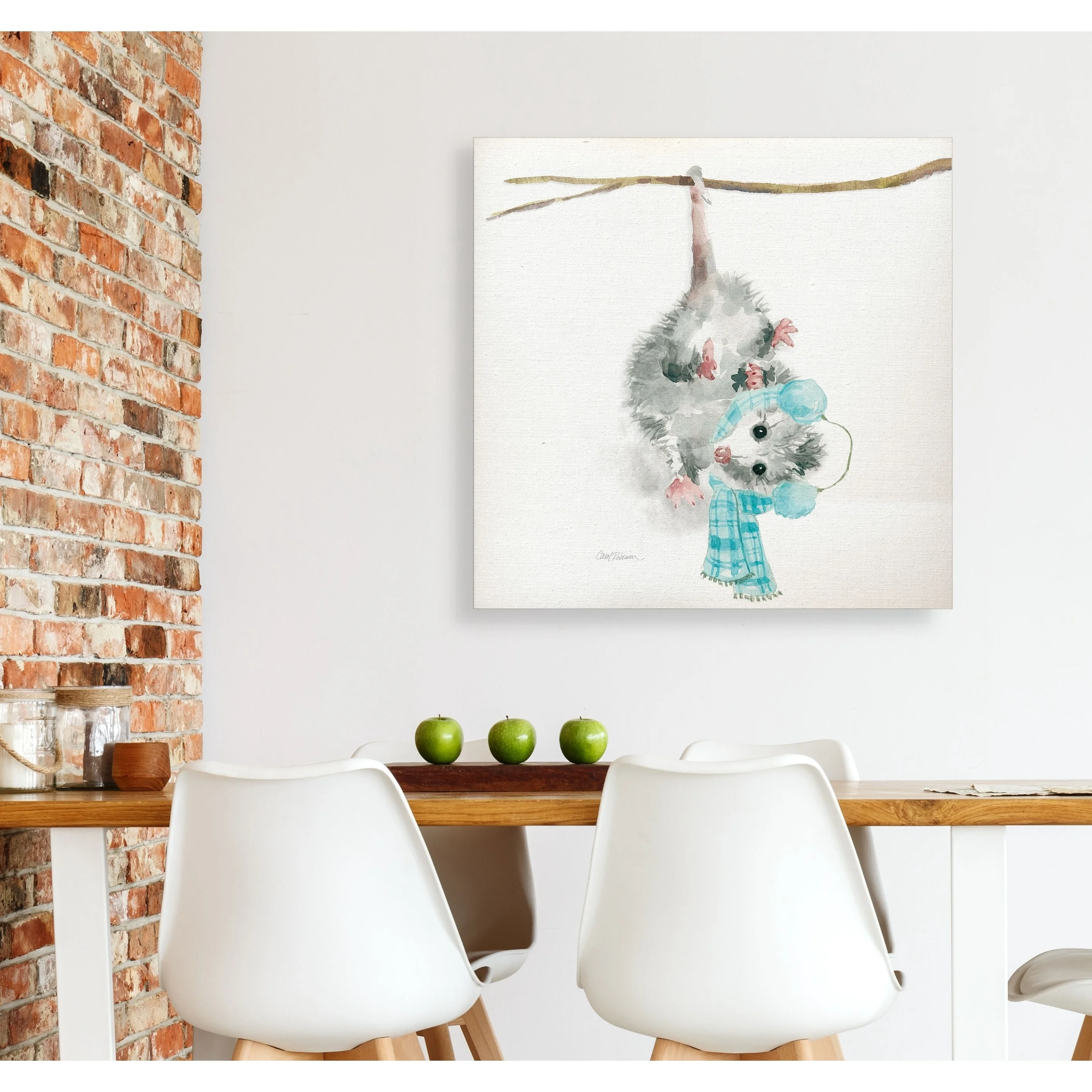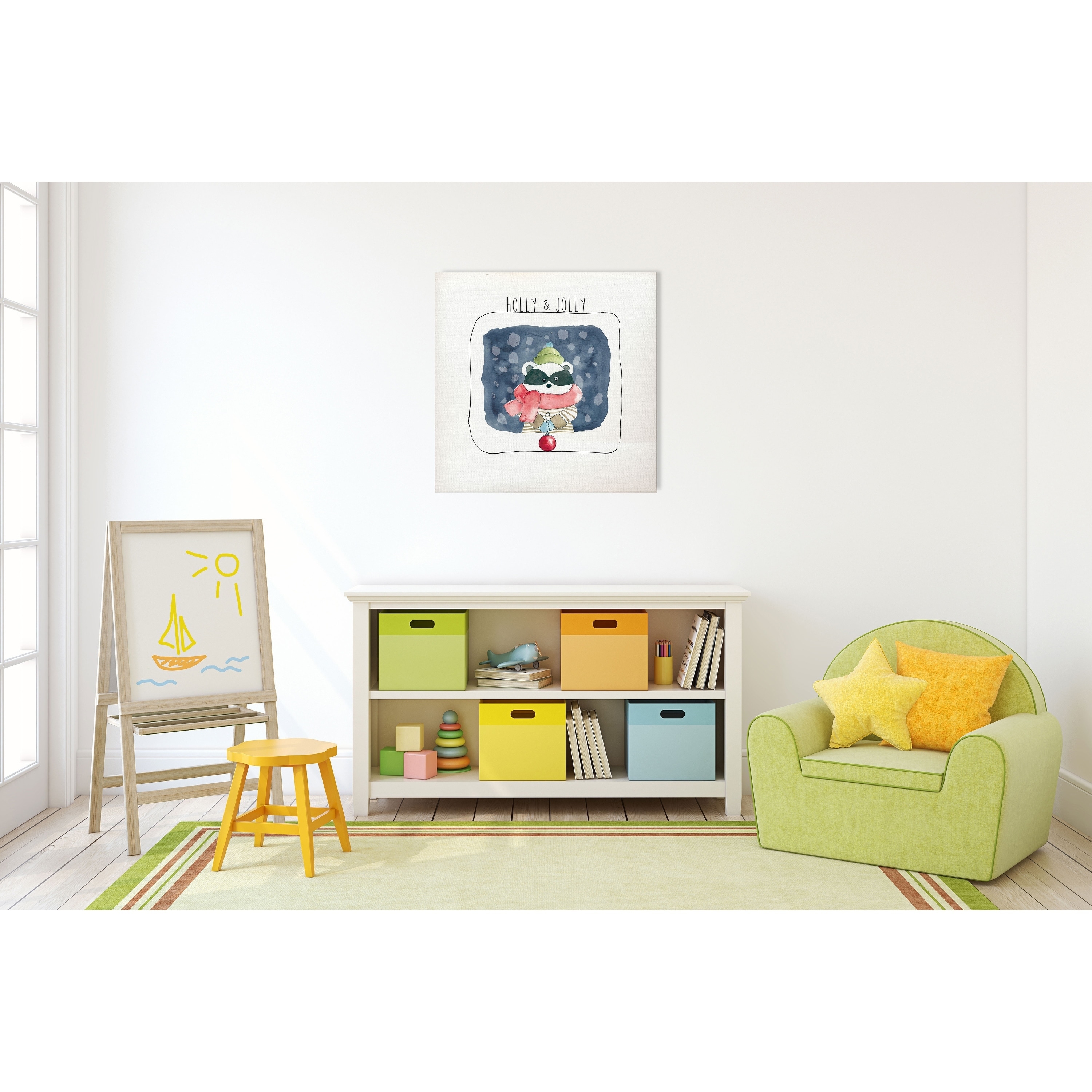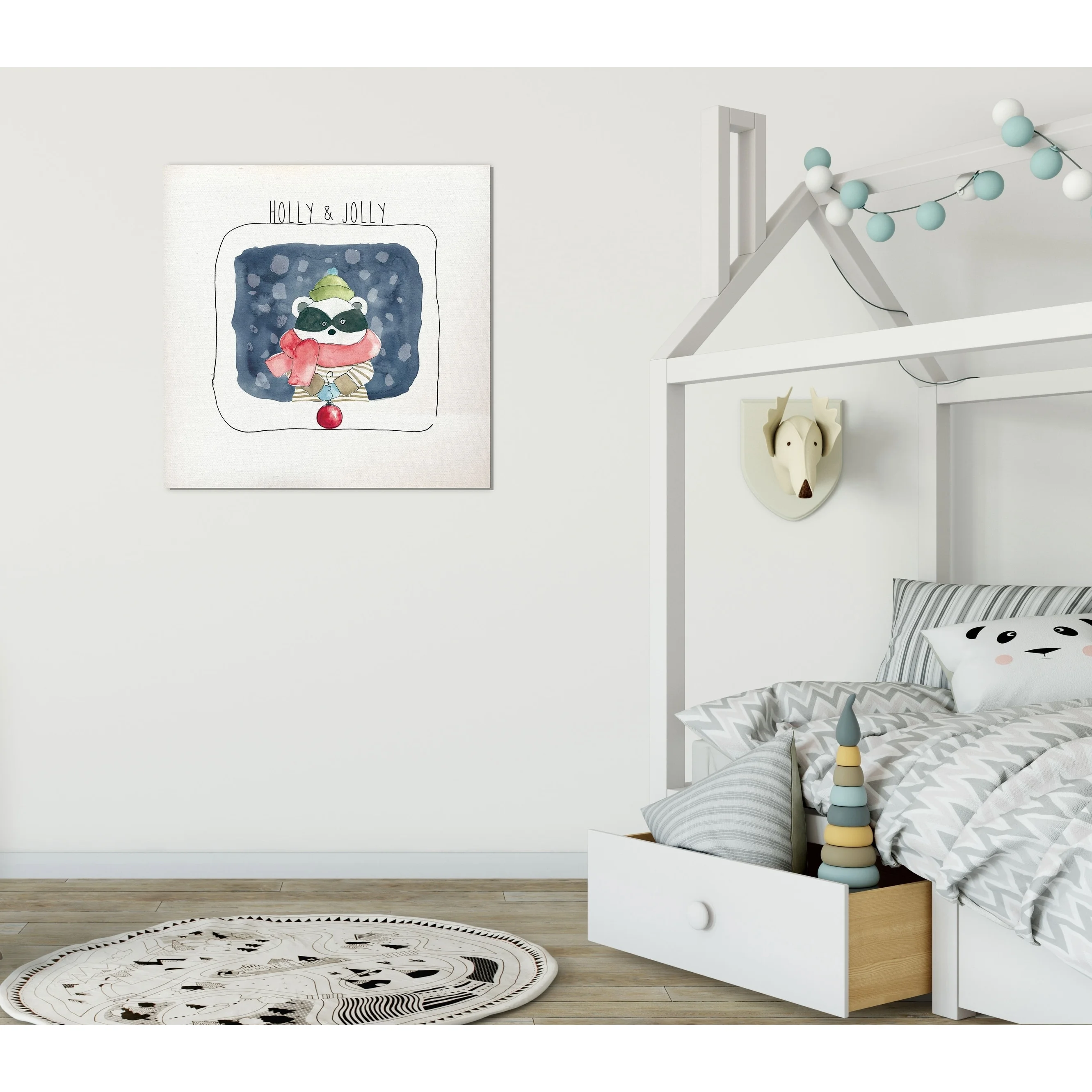 Wexford Home Christmas Raccoon -Gallery Wrapped Canvas - yellow, blue, green, red, black, white 10x10