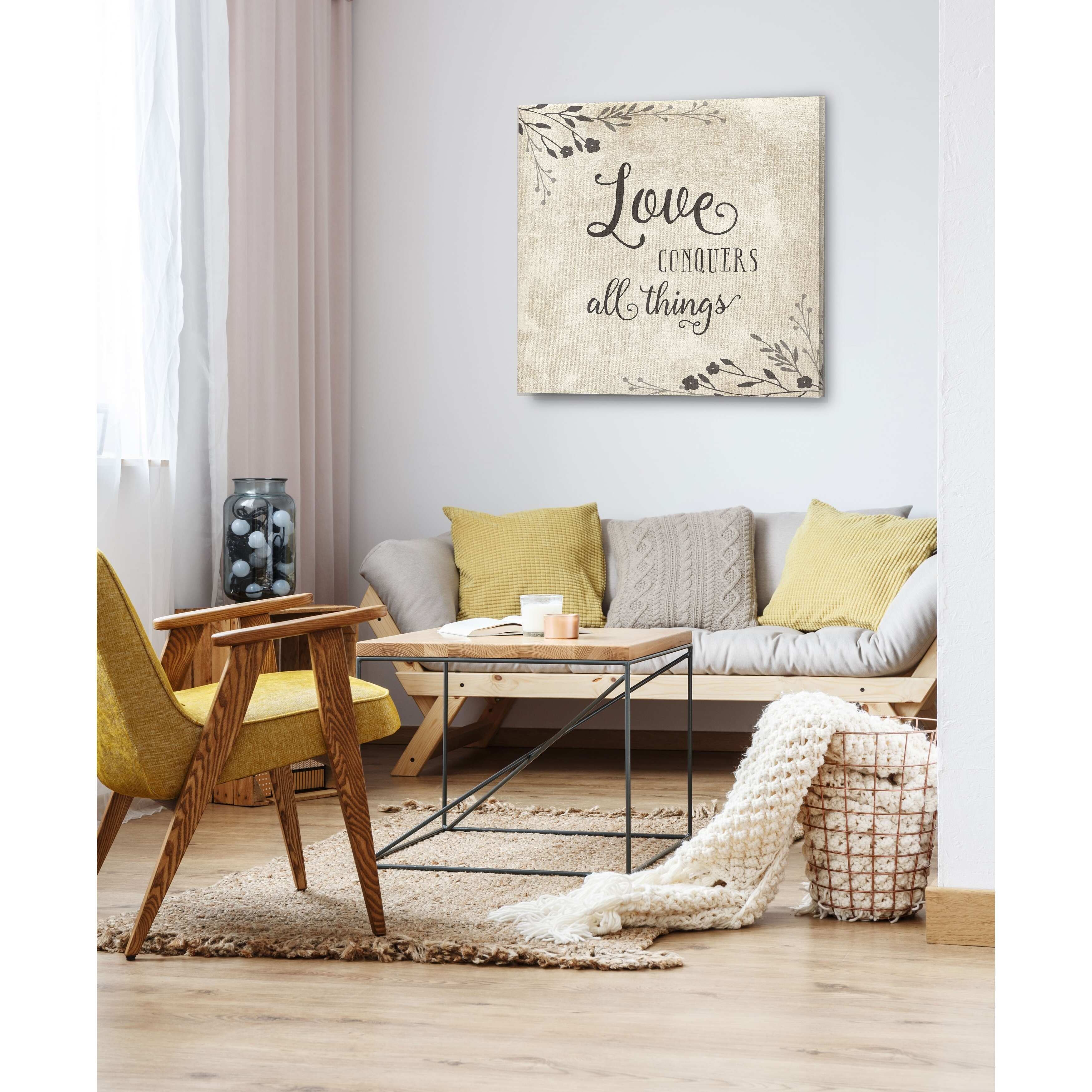 Wexford Home Love Conquers -Gallery Wrapped Canvas - yellow, blue, green, red, black, white 10x10
