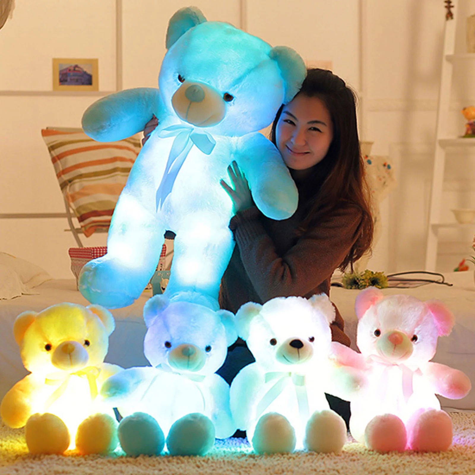 11.8 Inch Creative Light Up LED Inductive Teddy Bear Stuffed Animals Plush Toy Colorful Glowing Teddy Bear