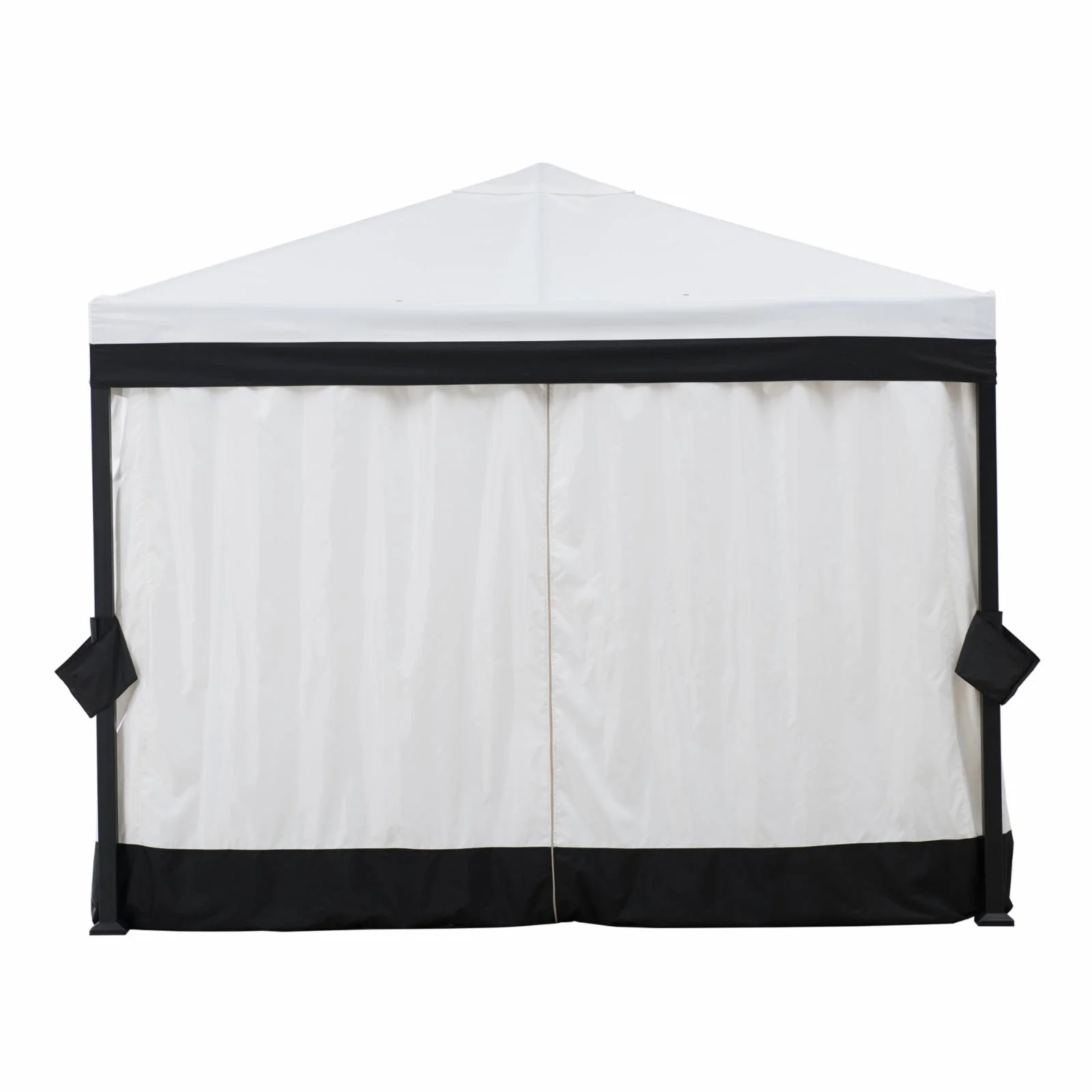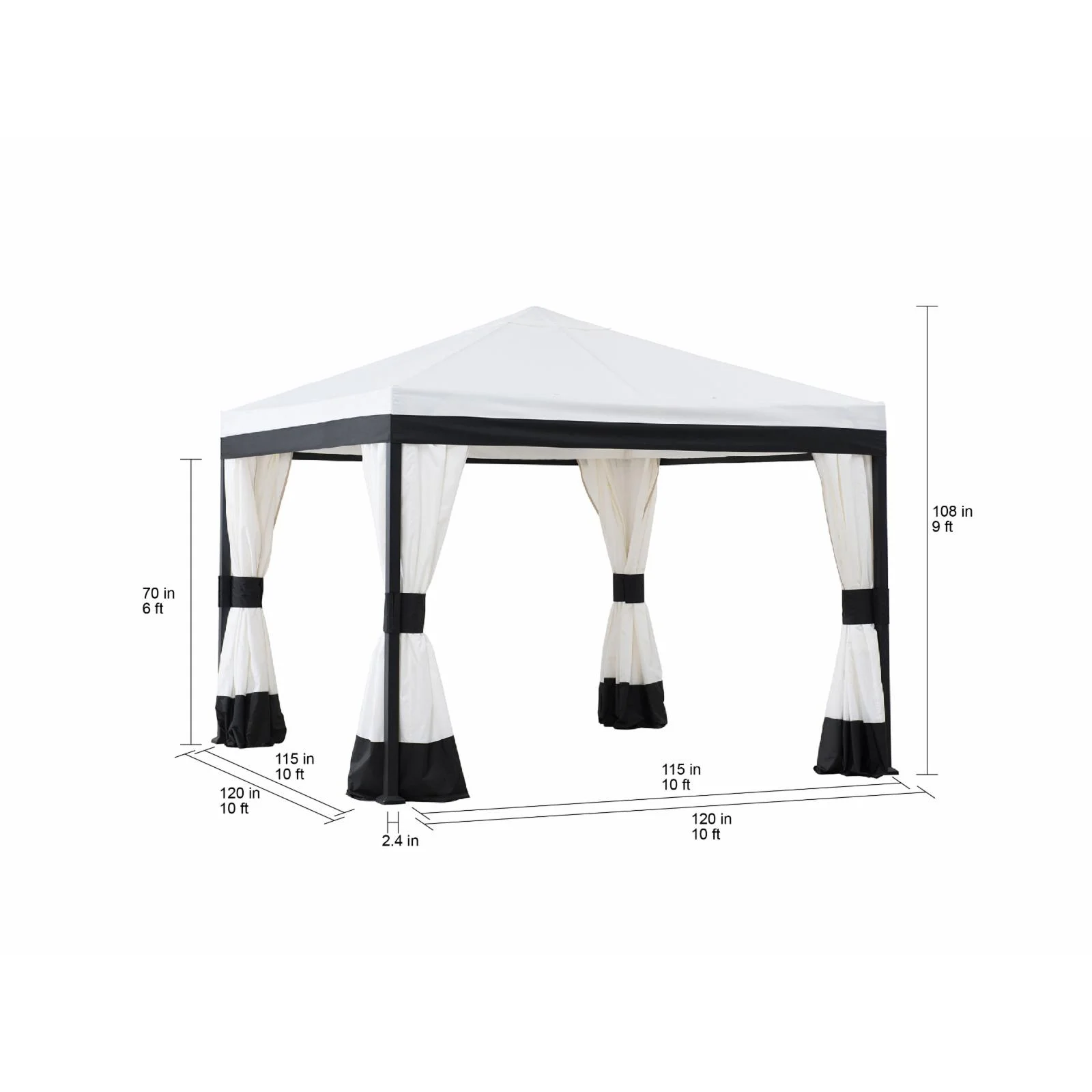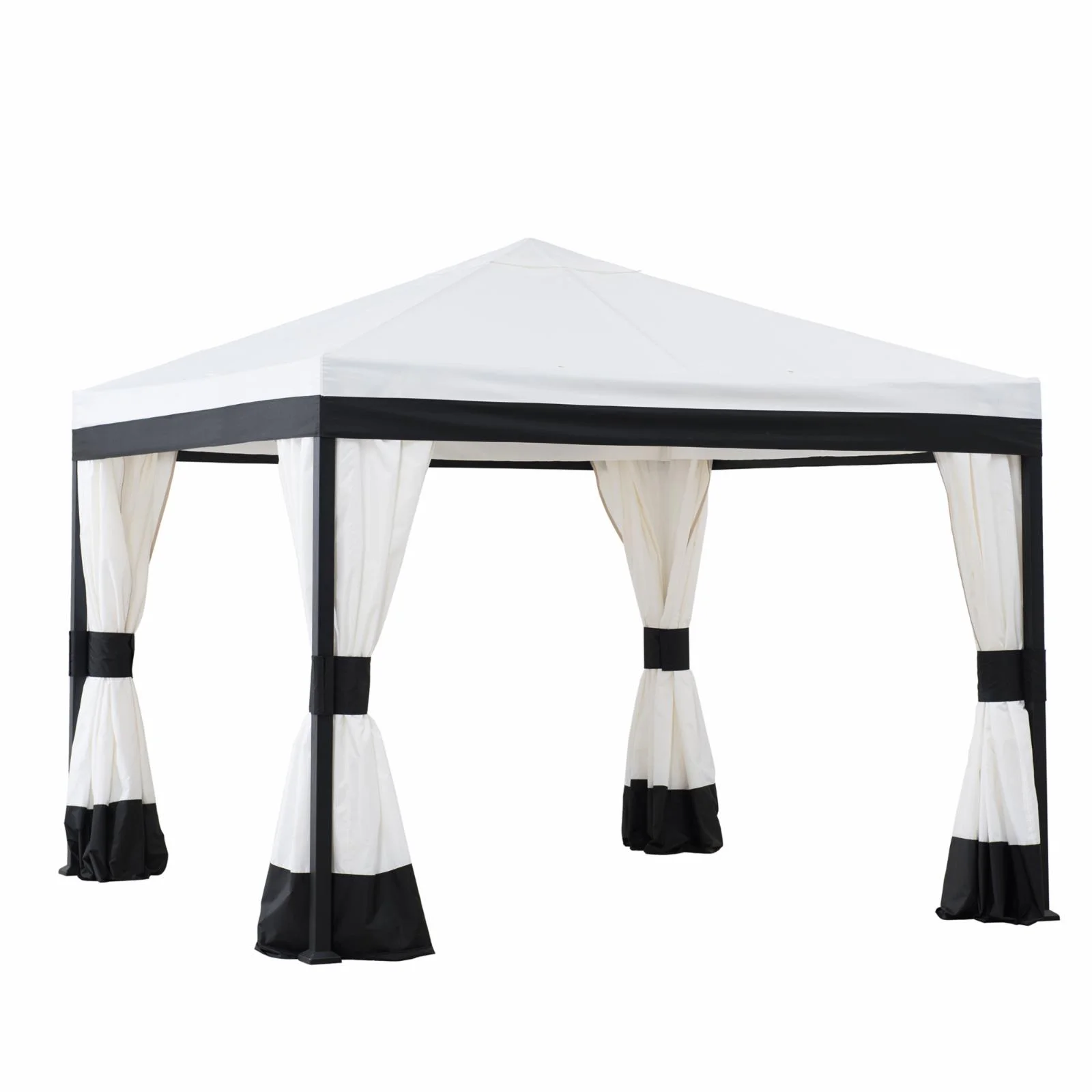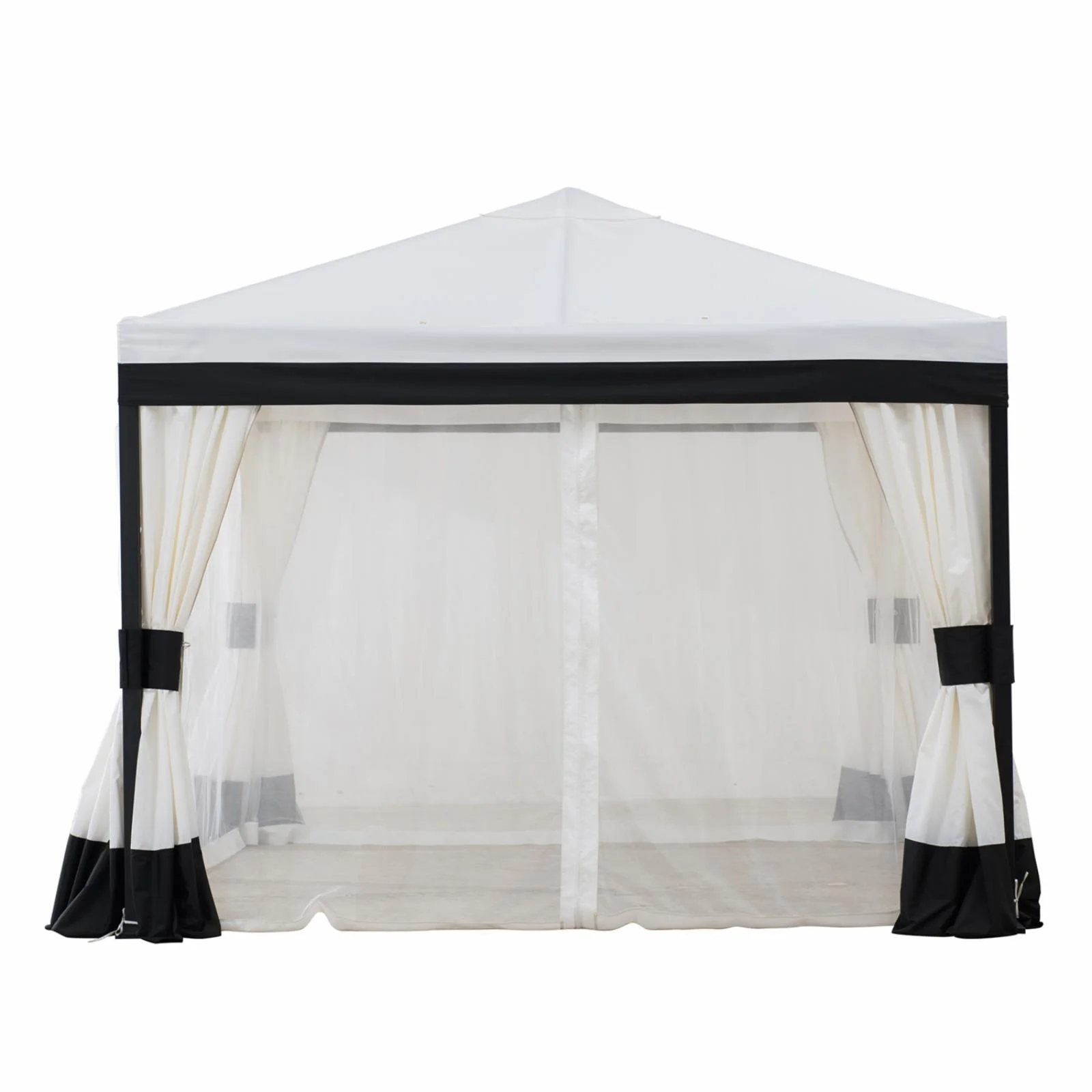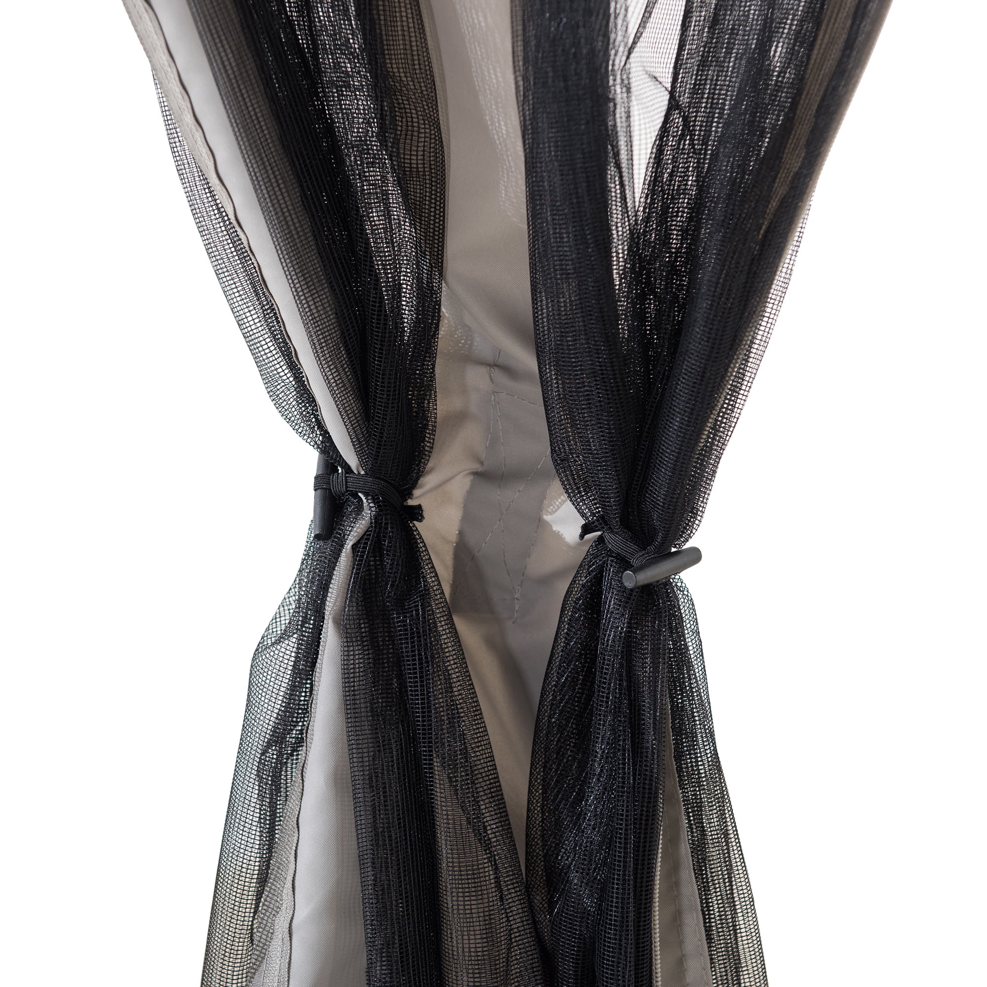 Sunjoy Outdoor Patio 11x13 Black 2-Tier Aluminum Backyard Hardtop Gazebo with Metal Ceiling Hook and Netting