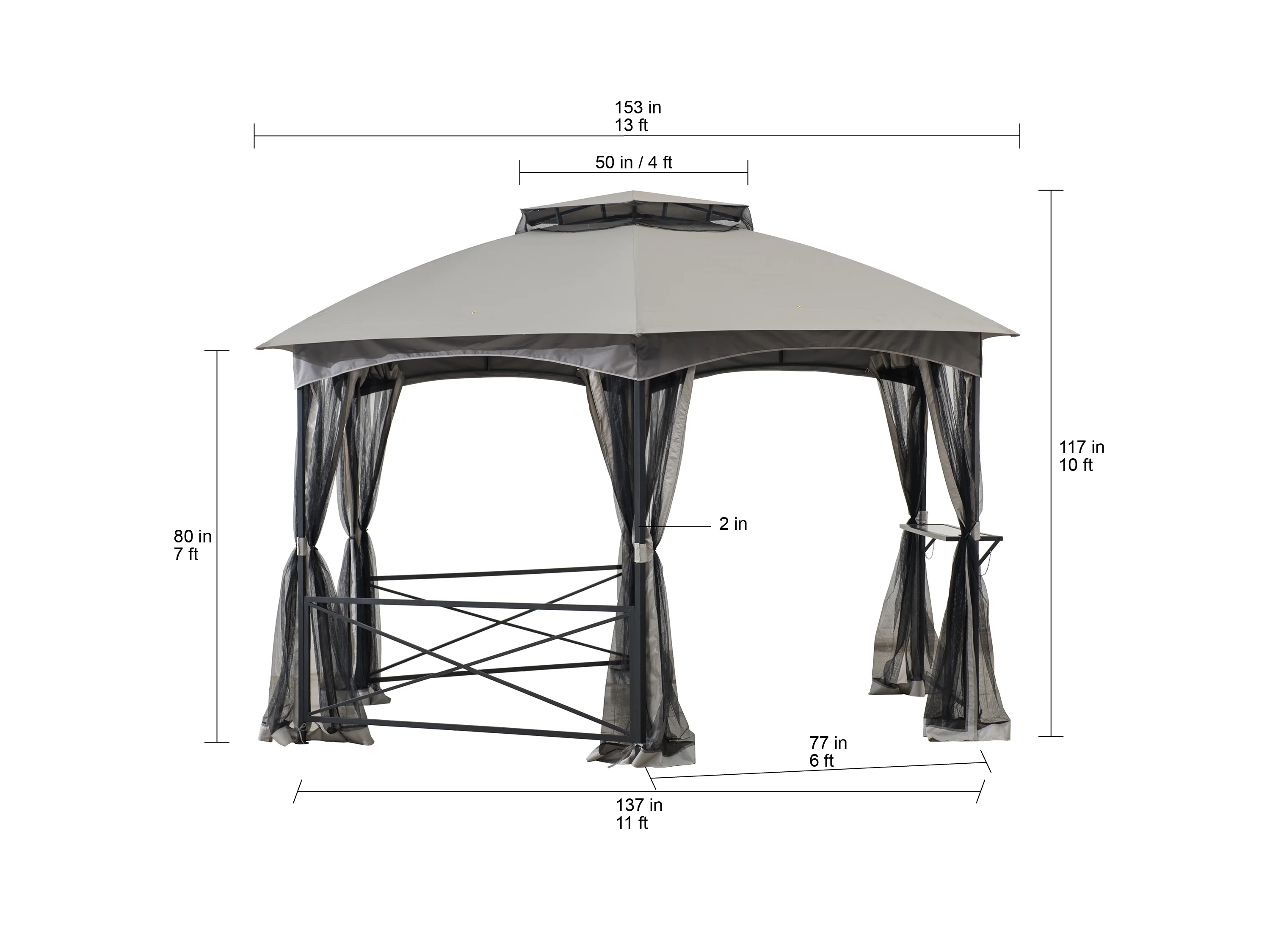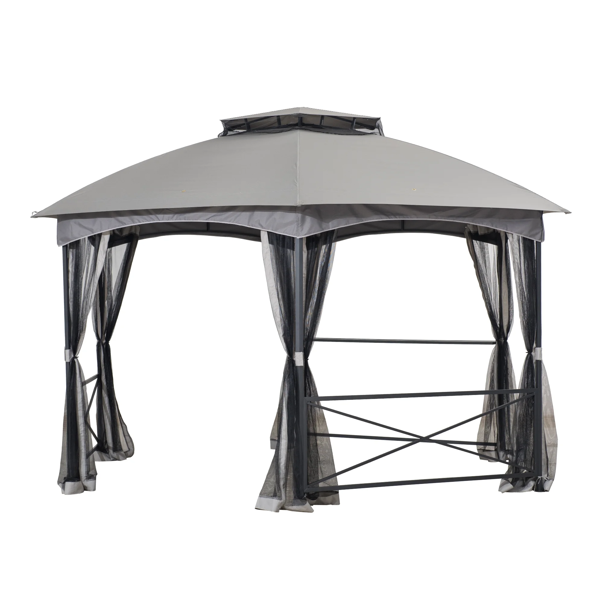 Sunjoy Beaux 11 ft. x 14 ft. 2-tone Gray Hexagon Steel Gazebo with 2-tier Dome Roof with Mosquito Netting