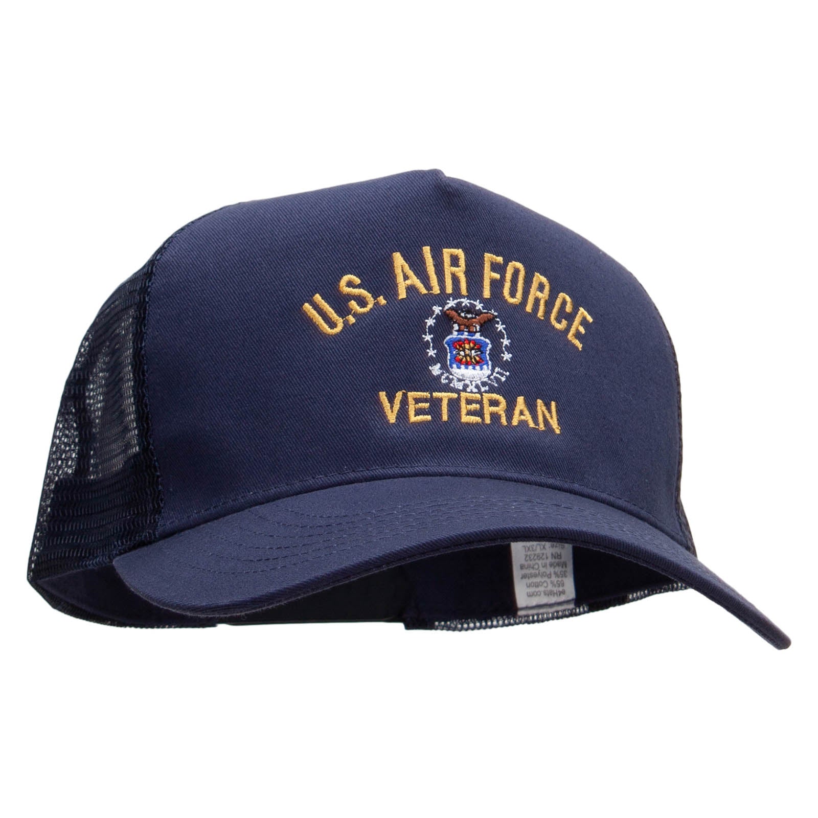 US Air Force Veteran Embroidered New Big Size Trucker Mesh Cap - Navy XL-3XL