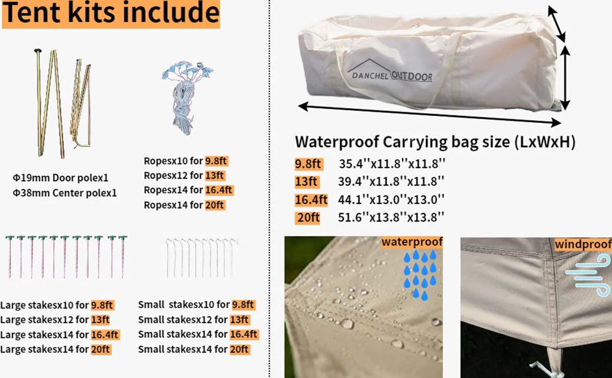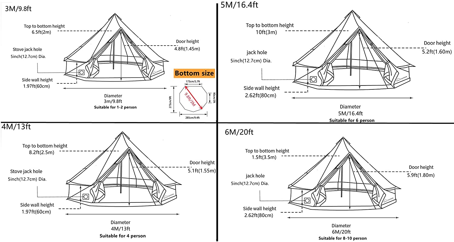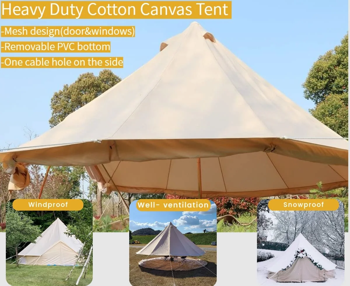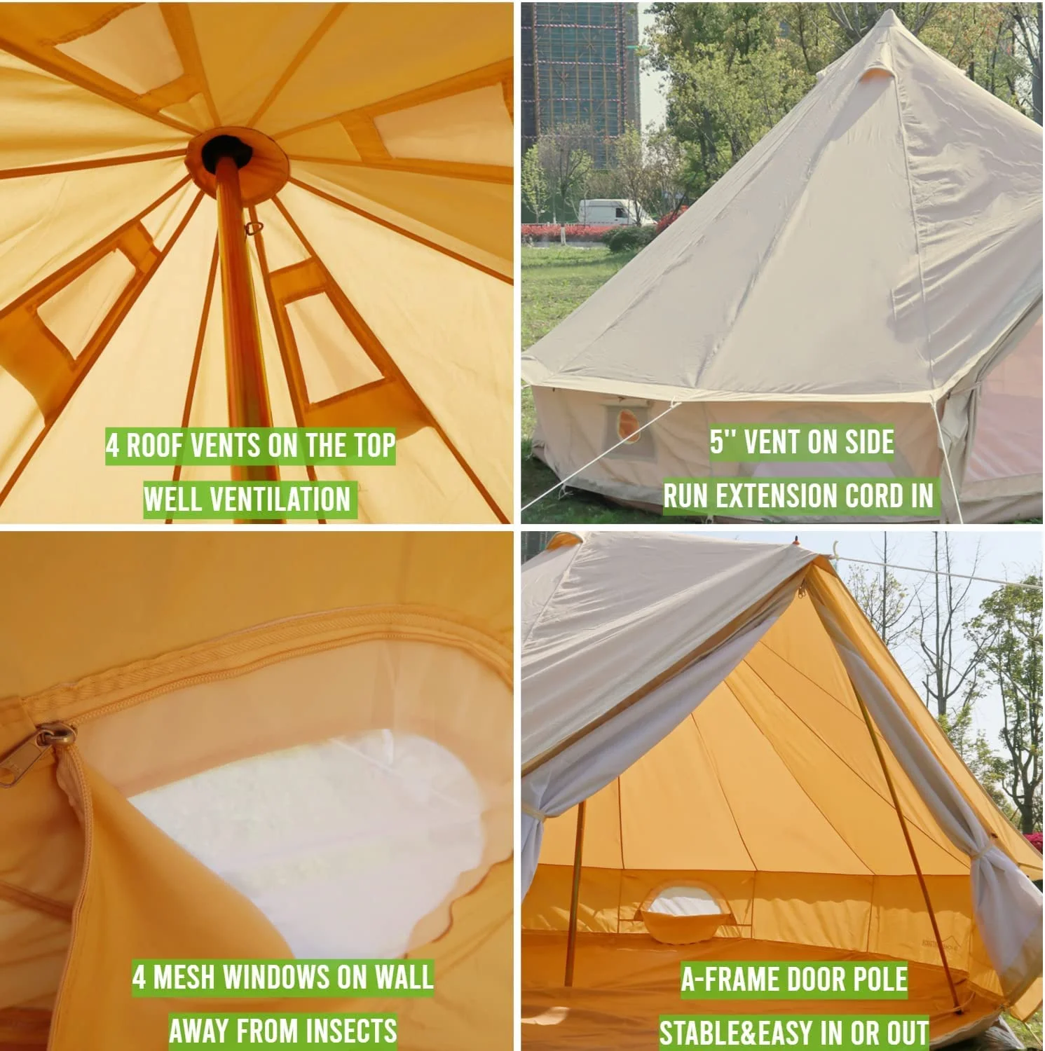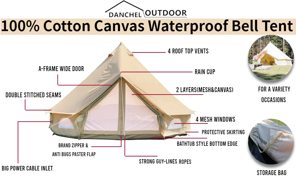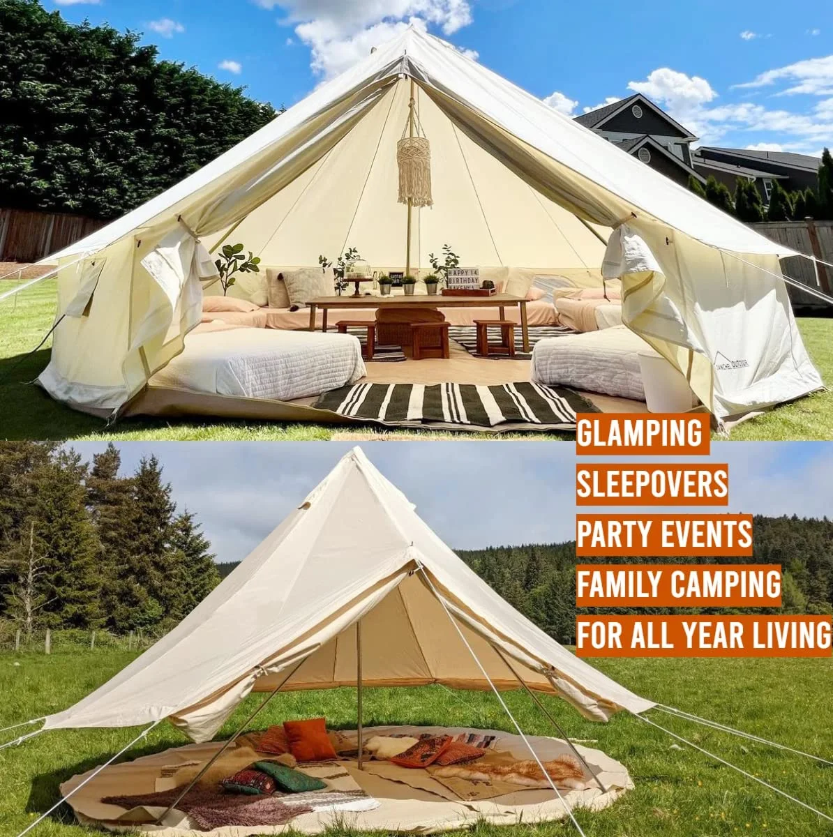 DANCHEL Outdoor 9.8ft = 3M Spacious Heavy Duty Waterproof Cotton Canvas Bell Tent for 2 Person Camping