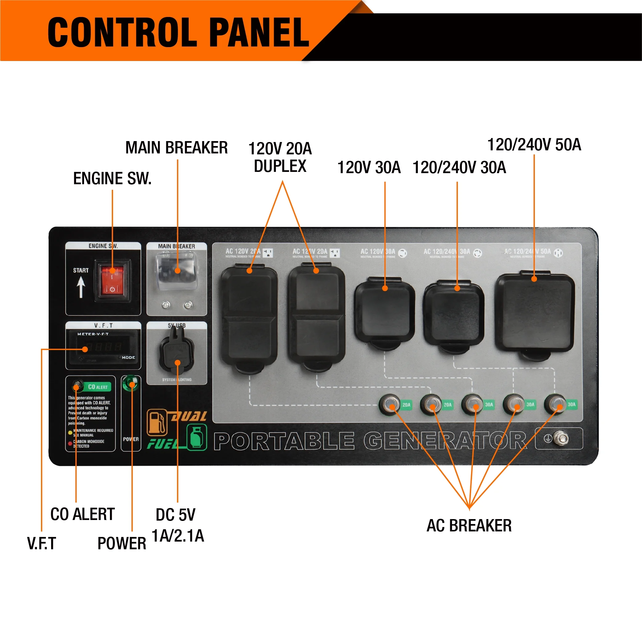 GENMAX Dual Fuel Portable Generator 12000 Watt Gas or Propane Powered Electric Start-CO Alert, Home Back Up, EPA Compliant