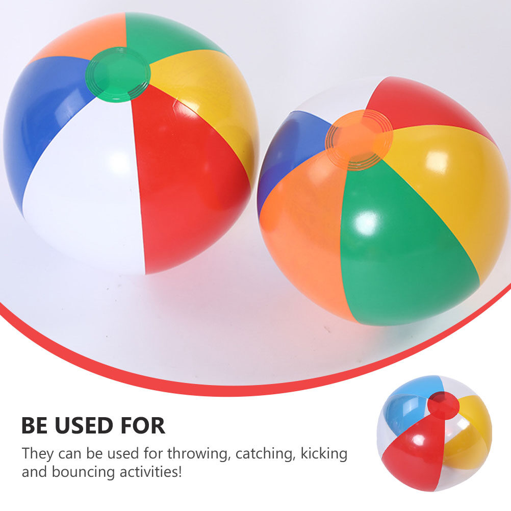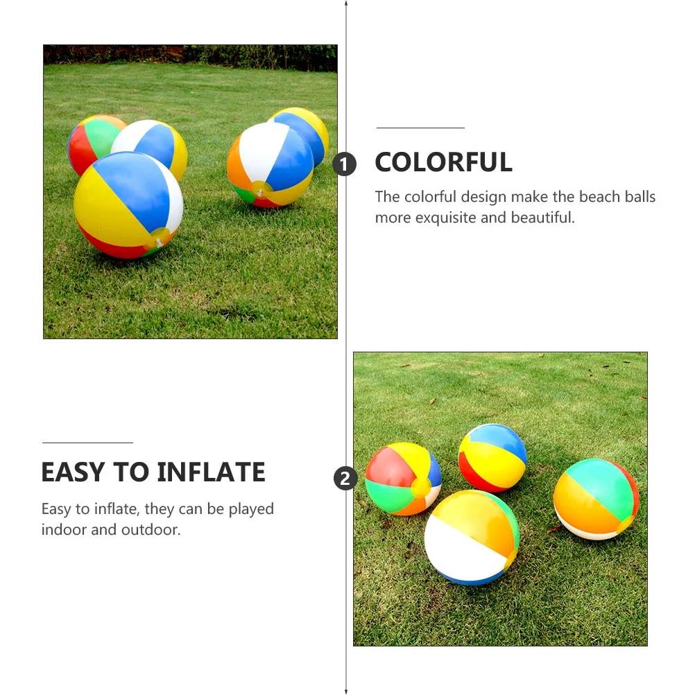 6 Inflatable Beach Balls Rainbow Ball Plastic Volleyball Play Kids Pool Birthday