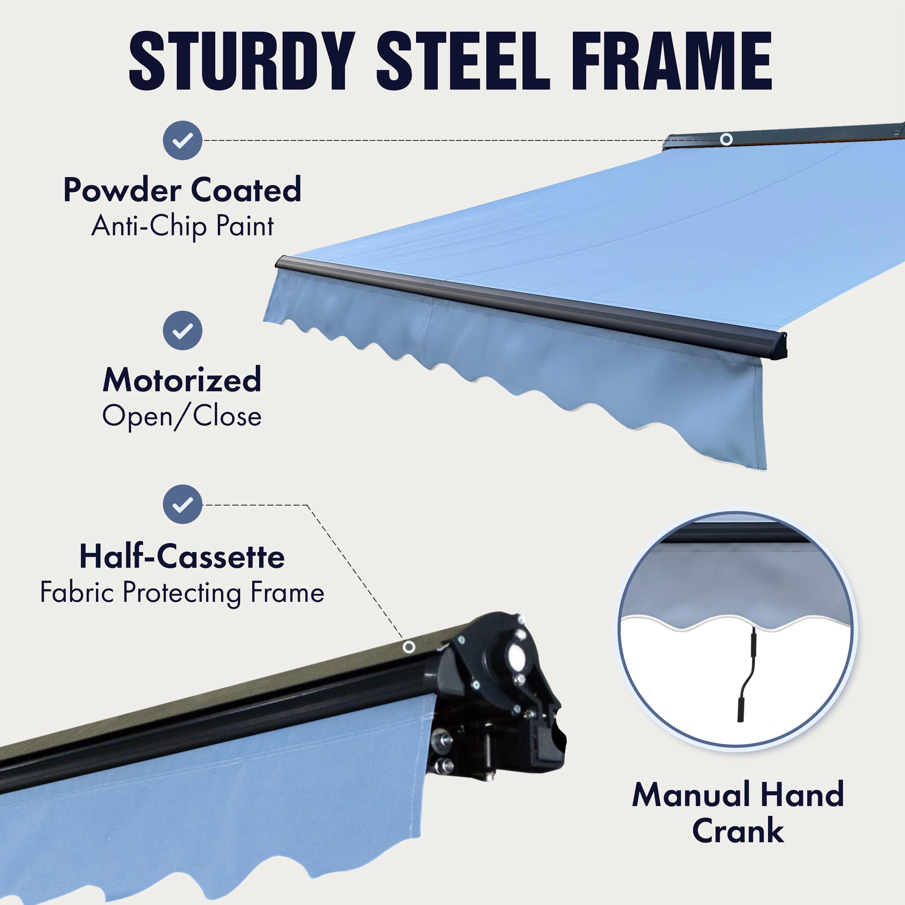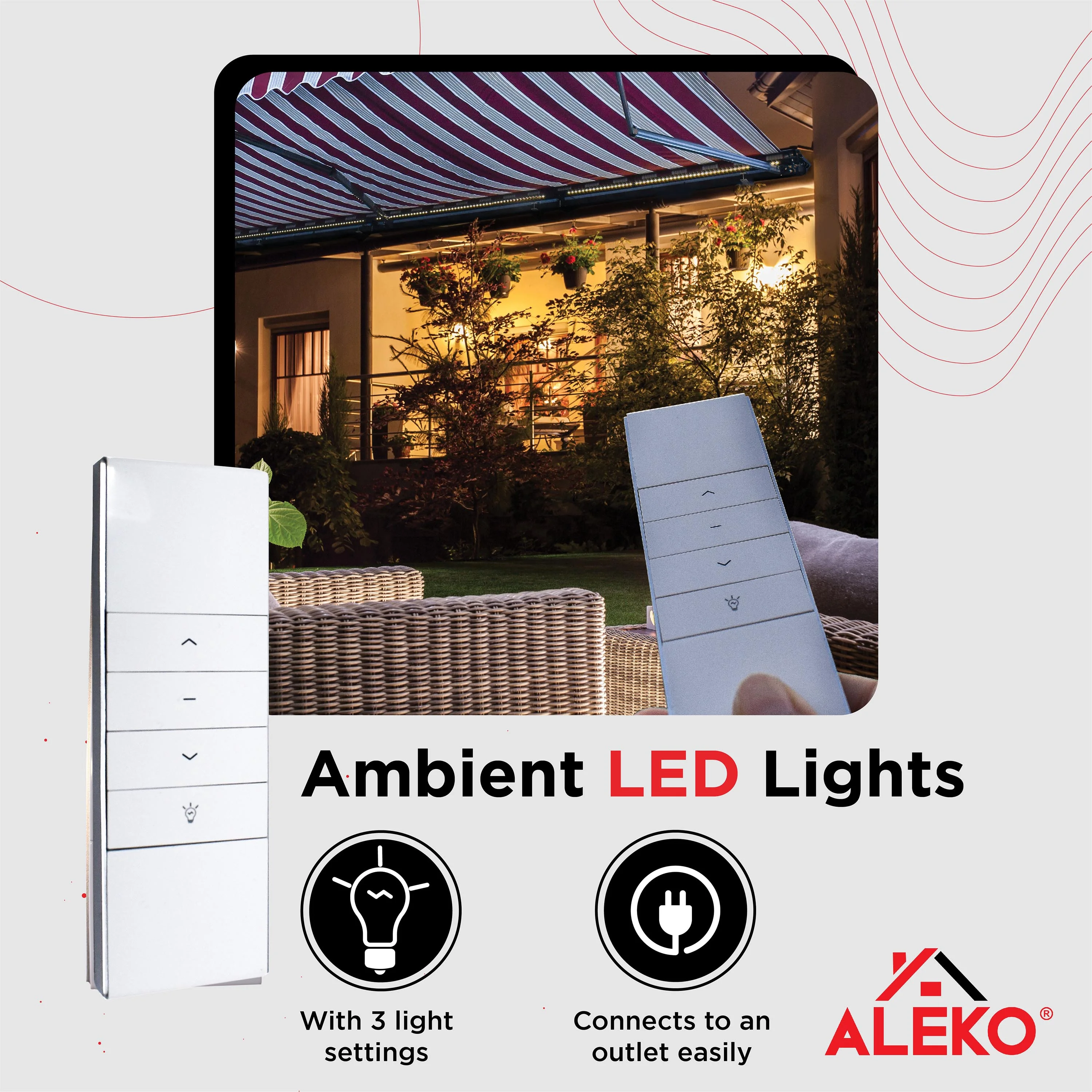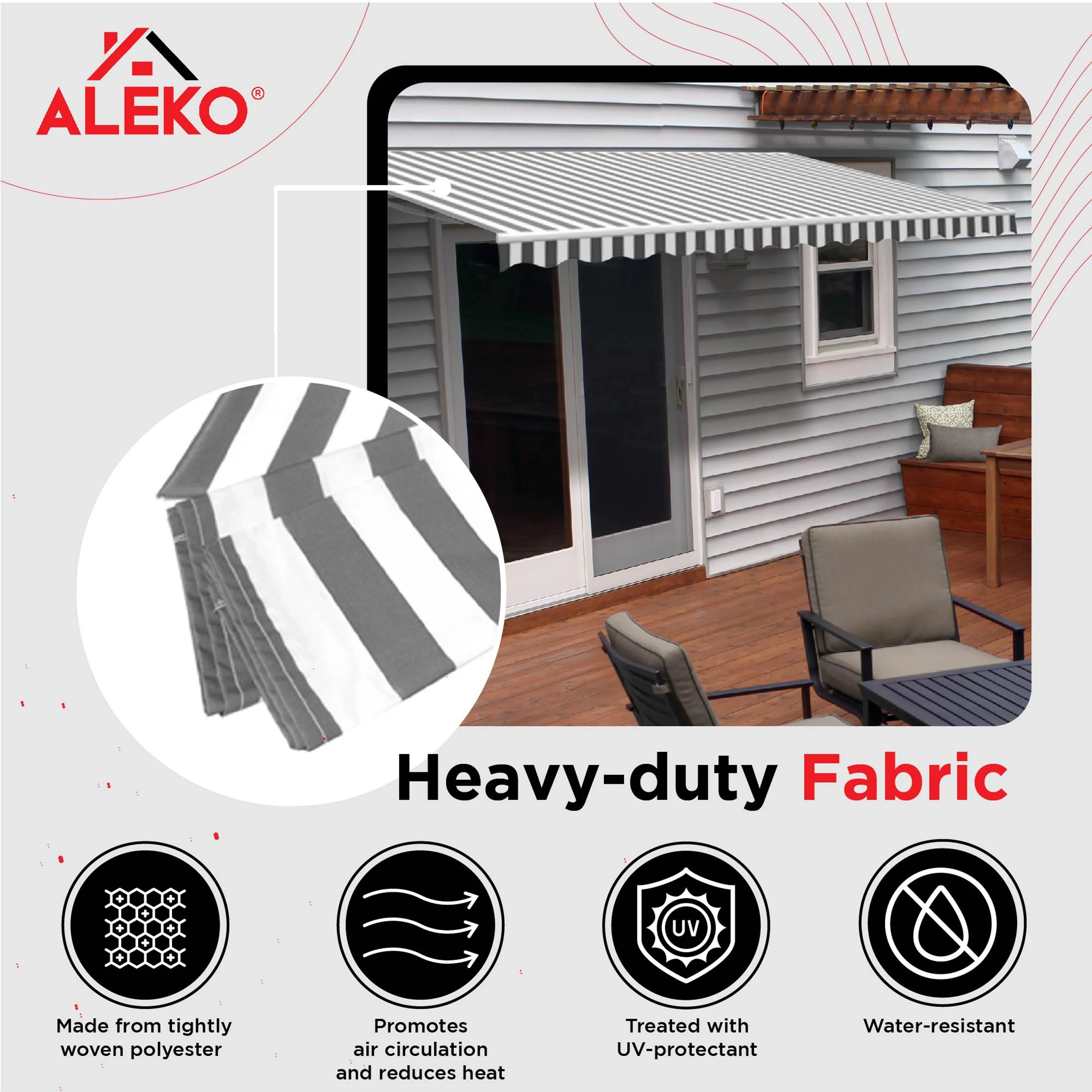 ALEKO LED Half Cassette Motorized 13 x 10 ft Retractable Patio Awning Grey White Striped