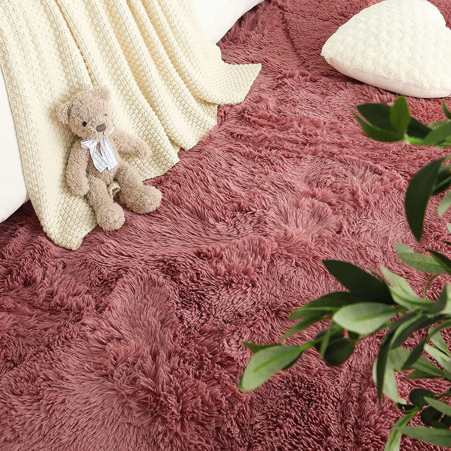 Homore Super Soft Area Rugs Fluffy Carpets for Bedroom Kids Girls Boys Living Room 4' x 5.3' , Blush