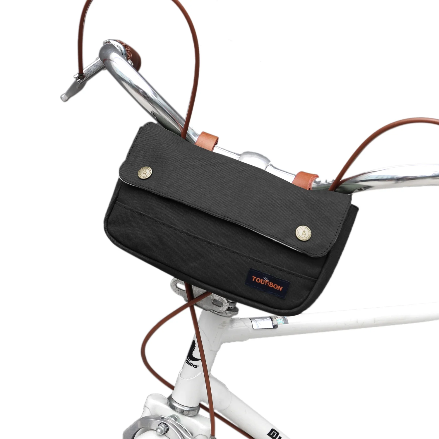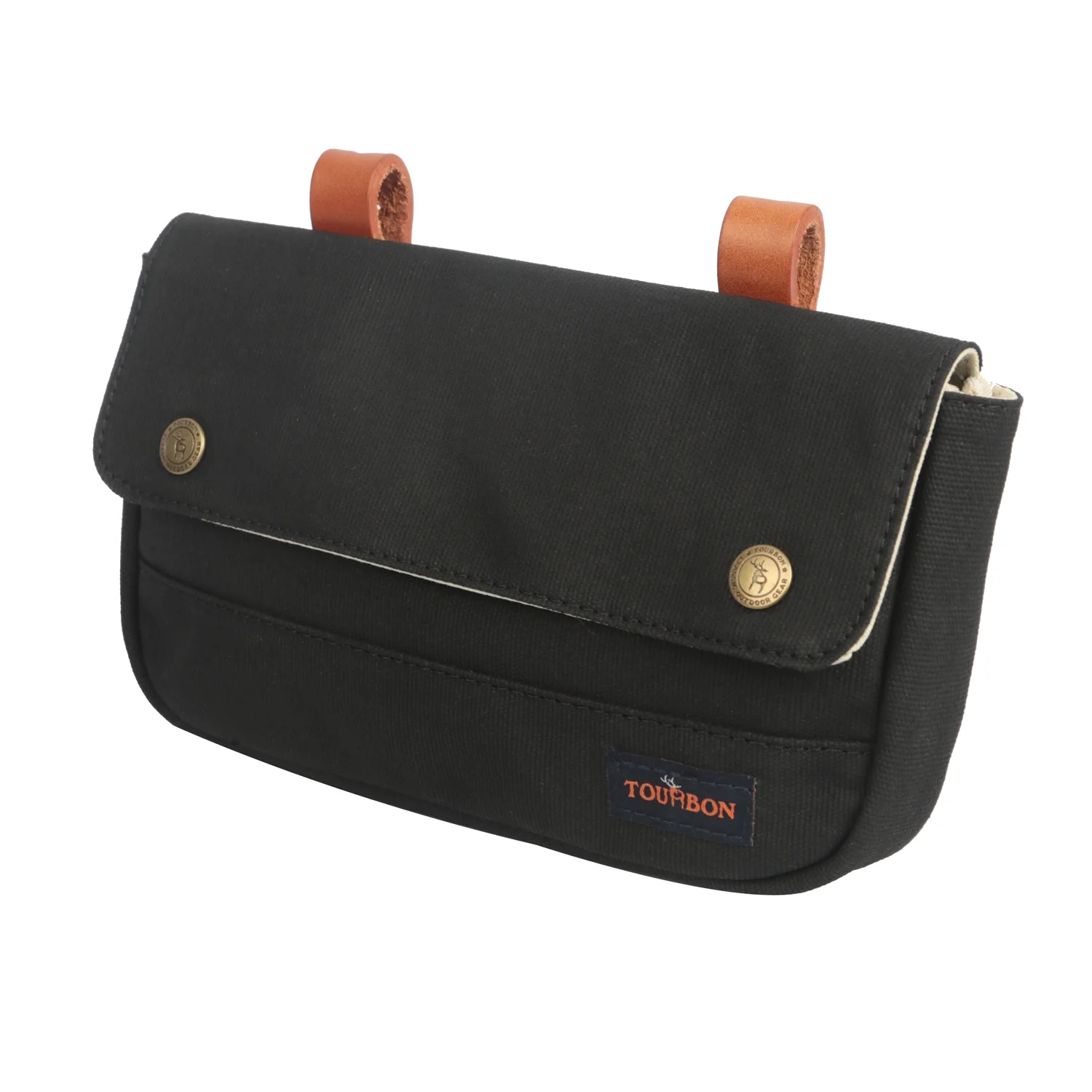 TOURBON Waxed Canvas Waterproof Storage Bicycle Handlebar Bag Front Pouch Retro Bike Panniers